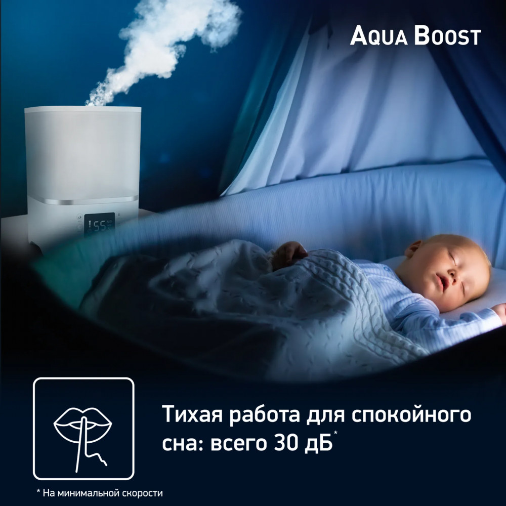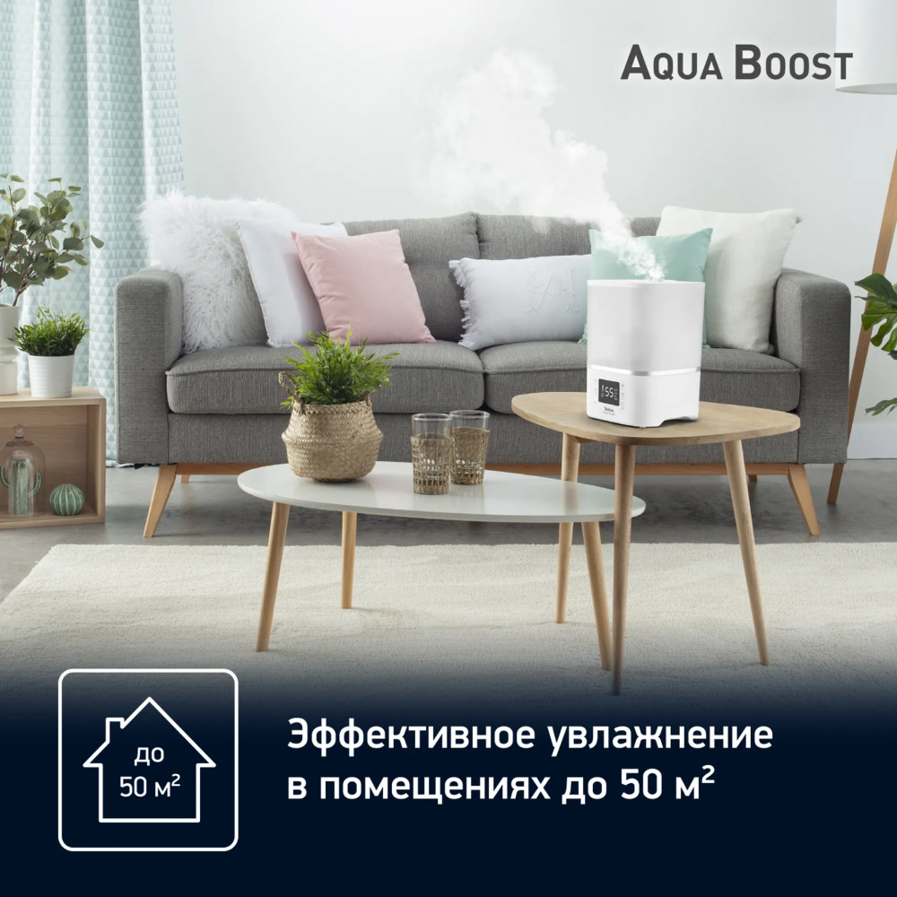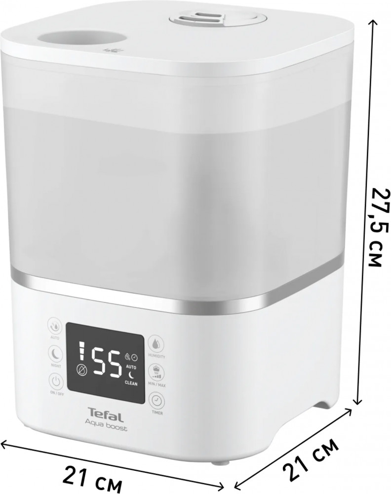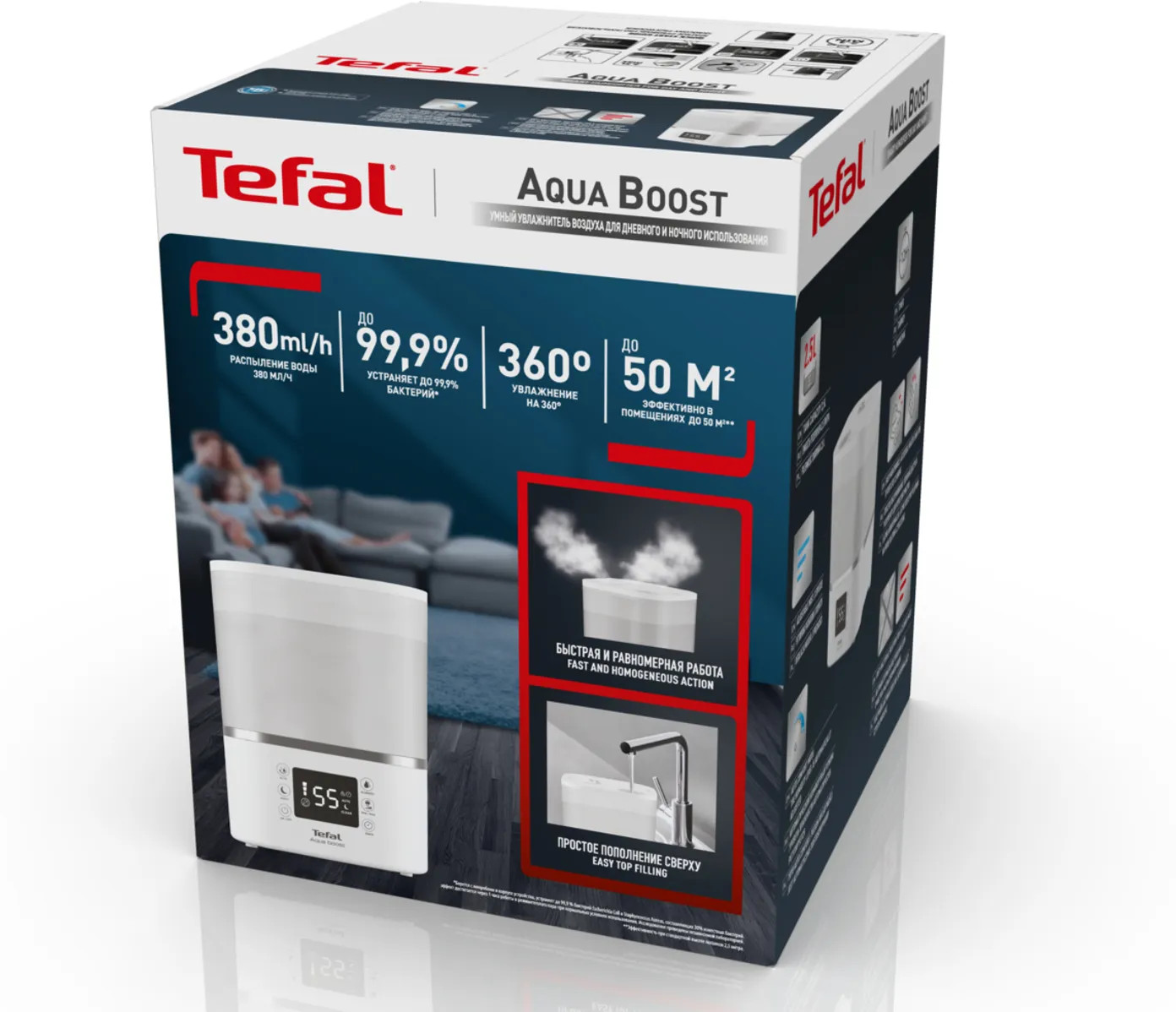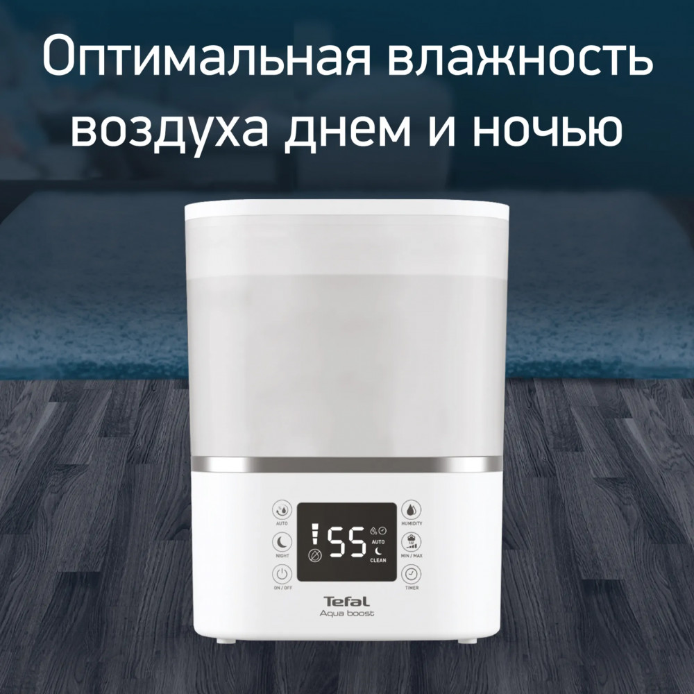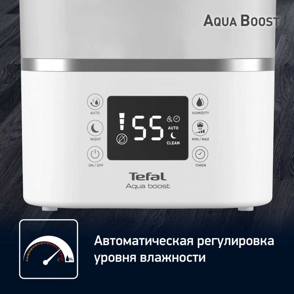 Оптимальный уровень влажности невероятно важен для здоровья человека и его комфорта. Увлажнитель воздуха Aqua Boost от Tefal легко обеспечивает нужный микроклимат в доме благодаря своей мощности, умным настройкам и предусмотренной в конструкции защите от бактерий. Увлажнитель позволяет охватывать помещение площадью до 50 кв. м и оснащен функцией интеллектуального контроля влажности, которая автоматически поддерживает ее оптимальный уровень. Низкий уровень шума и высокая автономность обеспечивают увлажнение воздуха в течение всей ночи, гарантируя комфортный сон. А его простой, но элегантный корпус с верхним заполнением идеально дополнит ваш интерьер.