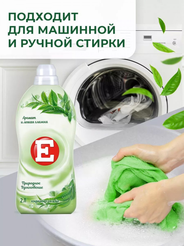 Кондиционер для белья E бережно и деликатно ухаживает за любой одеждой. Благодаря современной формуле из катионных ПАВ и глицерина кондиционер обладает эффективными преимуществами: