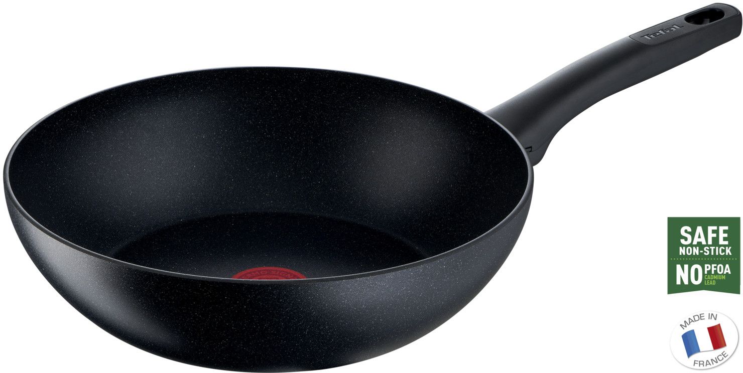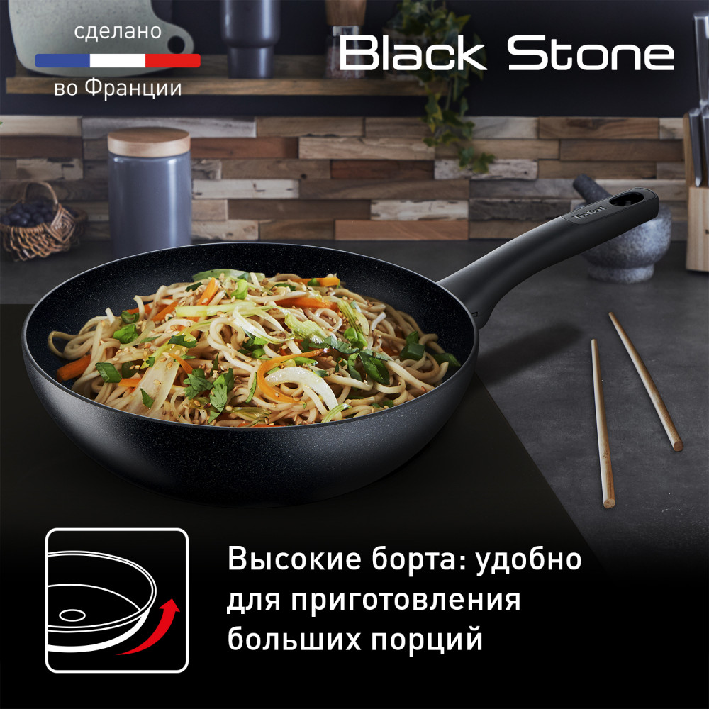 Сковорода-вок Black Stone предназначена для приготовления самых разных блюд — утки с хрустящей корочкой, тортильи с чоризо и перцем, копченой трески, нежного ризотто и многого другого. Благодаря высокопрочному покрытию посуда выдерживает частое приготовление на сильном огне. Индикатор Thermo-Signal™ показывает, когда сковорода нагрелась до идеальной температуры и можно начинать готовить, а дно Thermo-Fusion™ обеспечивает равномерный нагрев посуды для идеальных результатов. Все, что мы производим в Tefal уже более 60 лет, мы производим с заботой. С самого начала мы стремимся внедрять инновации и создавать полностью безопасные и максимально эффективные продукты, которые не вредят окружающей среде. Наша продукция не содержит PFOA, кадмий и свинец и производятся с применением французской экспертизы.
