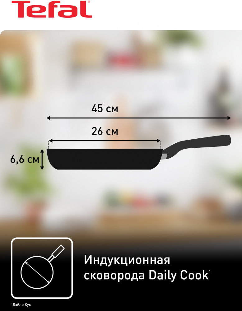 Сковорода выдерживает самые экстремальные способы приготовления и помогает создавать кулинарные шедевры на вашей кухне. Готовьте так, как вам нравится: надежная, долговечная и удобная посуда для кухни имеет 10-летнюю гарантию на лучшее качество нержавеющей стали и экспертное производство. Заклепочное крепление ручки алюминиевой сковороды гарантирует надежное и безопасное использование сковороды, а антипригарное покрытие Tefal создано, чтобы служить безупречно при ежедневной эксплуатации. Благодаря титановым частицам поверхности, покрытие сохраняет отличные антипригарные свойства до 2-х раз дольше по сравнению с стандартным покрытием Tefal Titanium. Посуда подходит для использования на газовых, электрических, стеклокерамических и индукционных плитах. Уникальный индикатор температуры Thermo-Signal вовремя подскажет, когда кухонный инвентарь нагрелся до оптимальной температуры для начала приготовления.