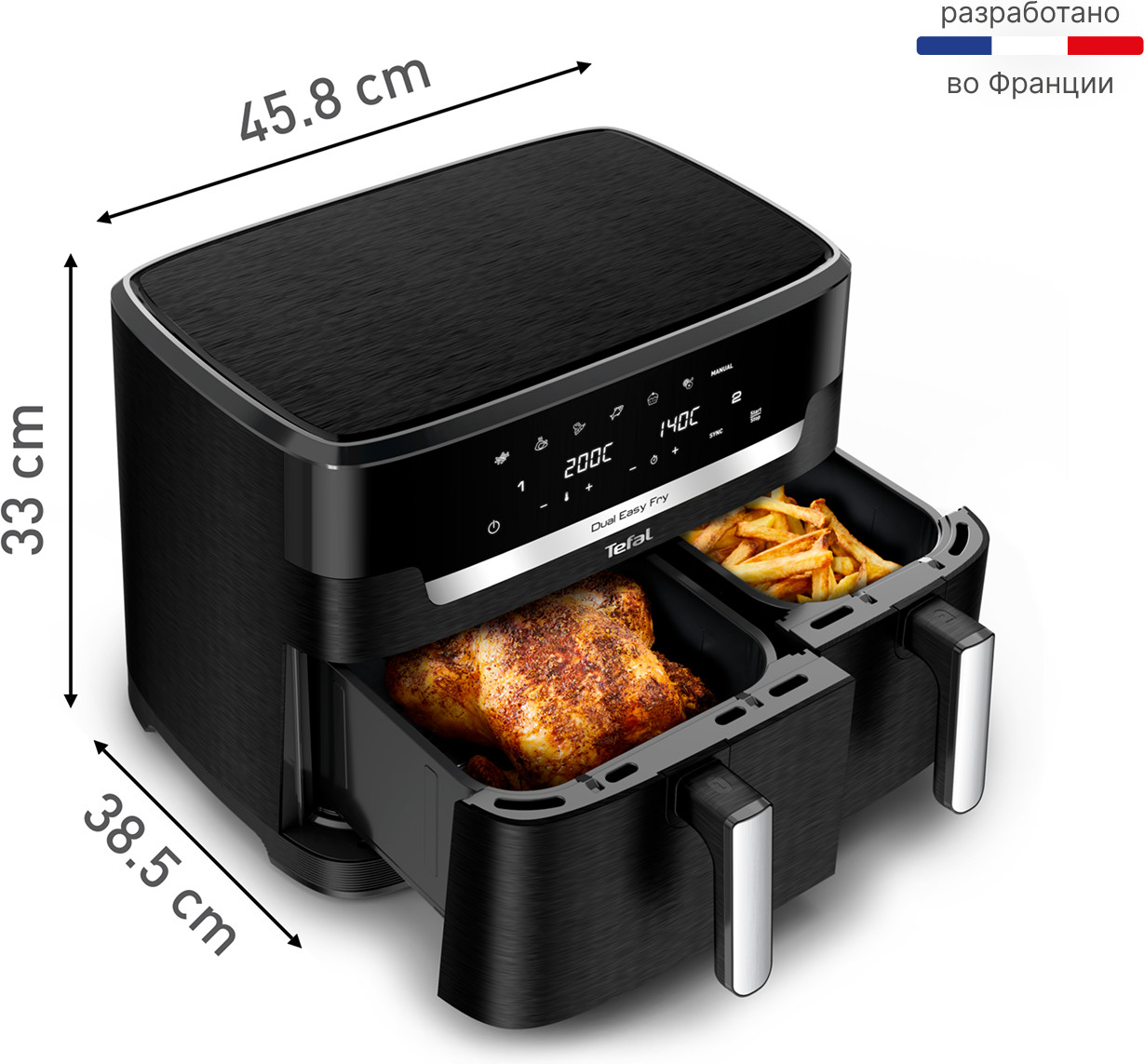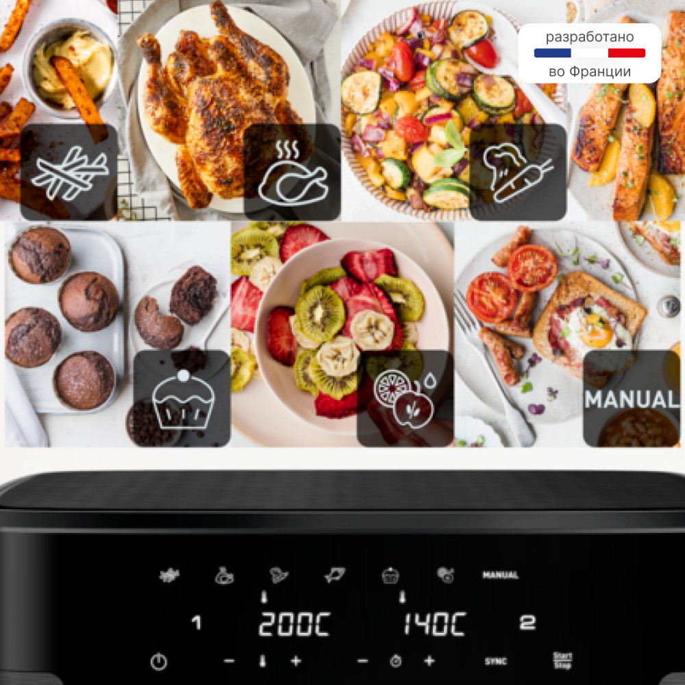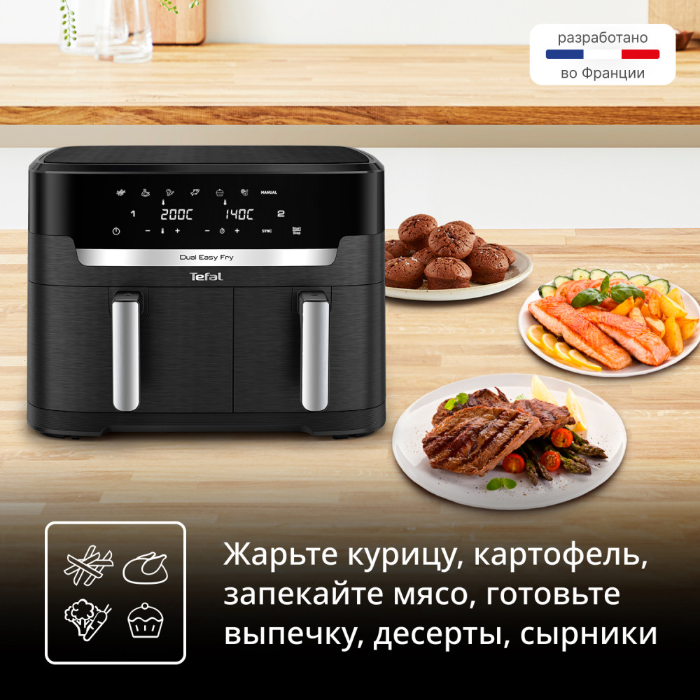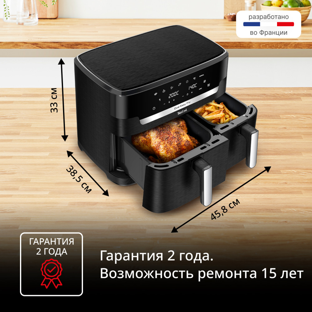 Серия: Dual Easy Fry Аэрогриль Tefal EY9428E0 — это устройство, которое сочетает в себе функции гриля и аэрогриля. Он позволяет готовить разнообразные блюда, от мяса и рыбы до овощей и десертов, при этом сохраняя все полезные свойства продуктов. Благодаря технологии циркуляции горячего воздуха, продукты равномерно прогреваются со всех сторон, что обеспечивает равномерное приготовление и аппетитную золотистую корочку. Аэрогриль Tefal EY9428E0 оснащен электронным управлением, что позволяет точно контролировать температуру и время приготовления. Вы можете выбрать одну из 10 автоматических программ, каждая из которых предназначена для определенного типа блюда. Аэрогриль Tefal EY9428E0 выполнен из качественных материалов, что гарантирует его долговечность и надежность в использовании. Выбирая аэрогриль Tefal EY9428E0, вы получаете многофункциональное устройство, которое поможет вам приготовить разнообразные и вкусные блюда, при этом сэкономив ваше время и силы. |