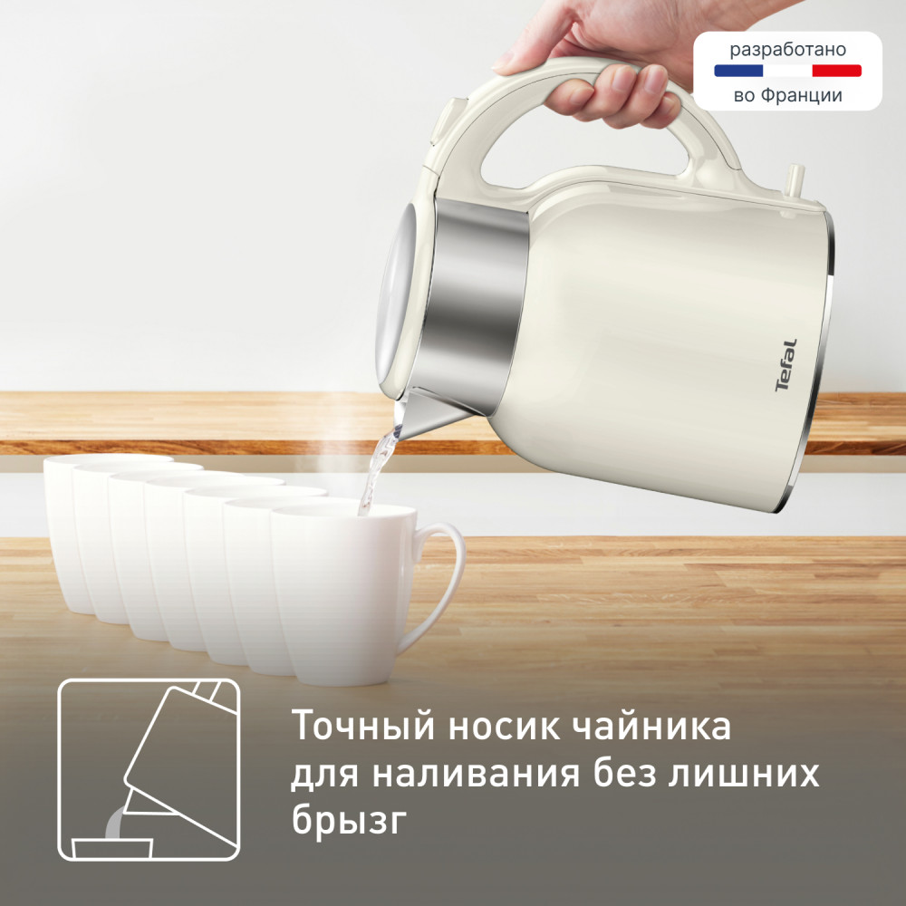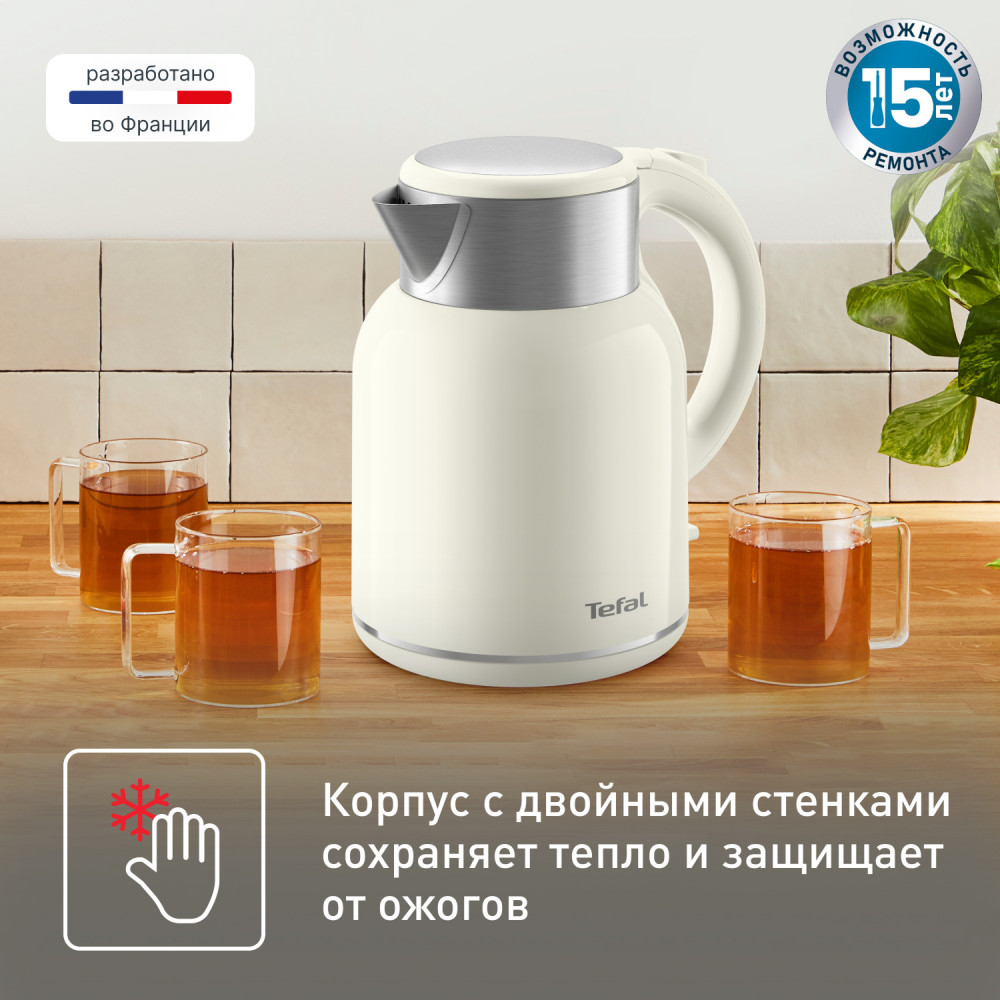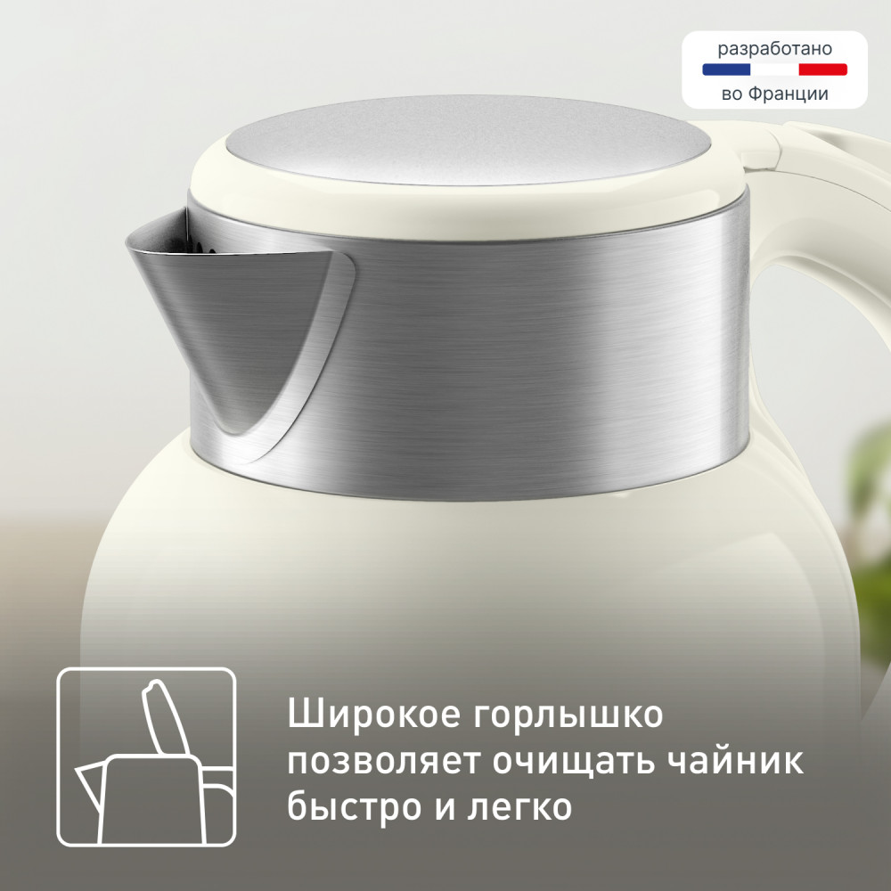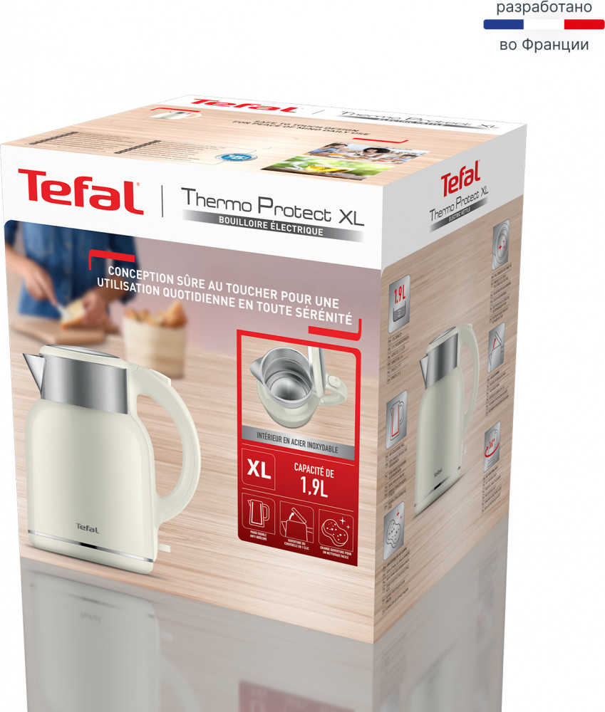 Серия: Thermo Protect Приготовьте горячие напитки для всей семьи с электрическим чайником Thermo Protect XL от Tefal вместимостью до 7 чашек! Благодаря корпусу с двойными стенками вода внутри чайника остается горячей, а его внешнее покрытие не нагревается и безопасно для прикосновений. Широкое горлышко и скрытый нагревательный элемент облегчают чистку прибора, а автоматическое отключение и удобный носик для наливания воды без капель и брызг позволяют готовить любимые напитки с полным комфортом и спокойствием. |