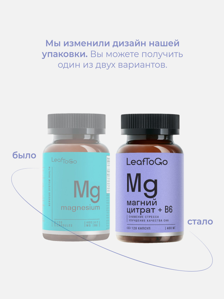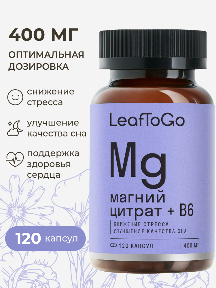 Магний цитрат 400 мг с витамином В6 120 капсул LeafToGo — это тщательно разработанная формула для поддержания жизненного тонуса и эмоционального равновесия. Комплекс витаминов для женщин и мужчин способствует полноценному усвоению и активной работе компонентов в организме, так как содержит Магнезиум цитрат в дозировке 400 мг — одну из наиболее легко усваиваемых форм, усиленную В6.