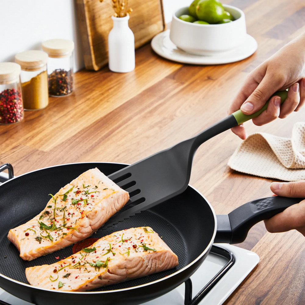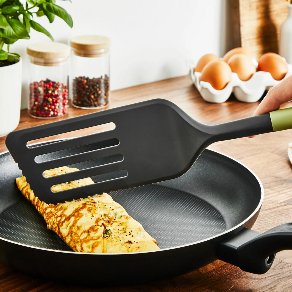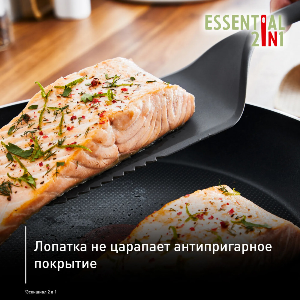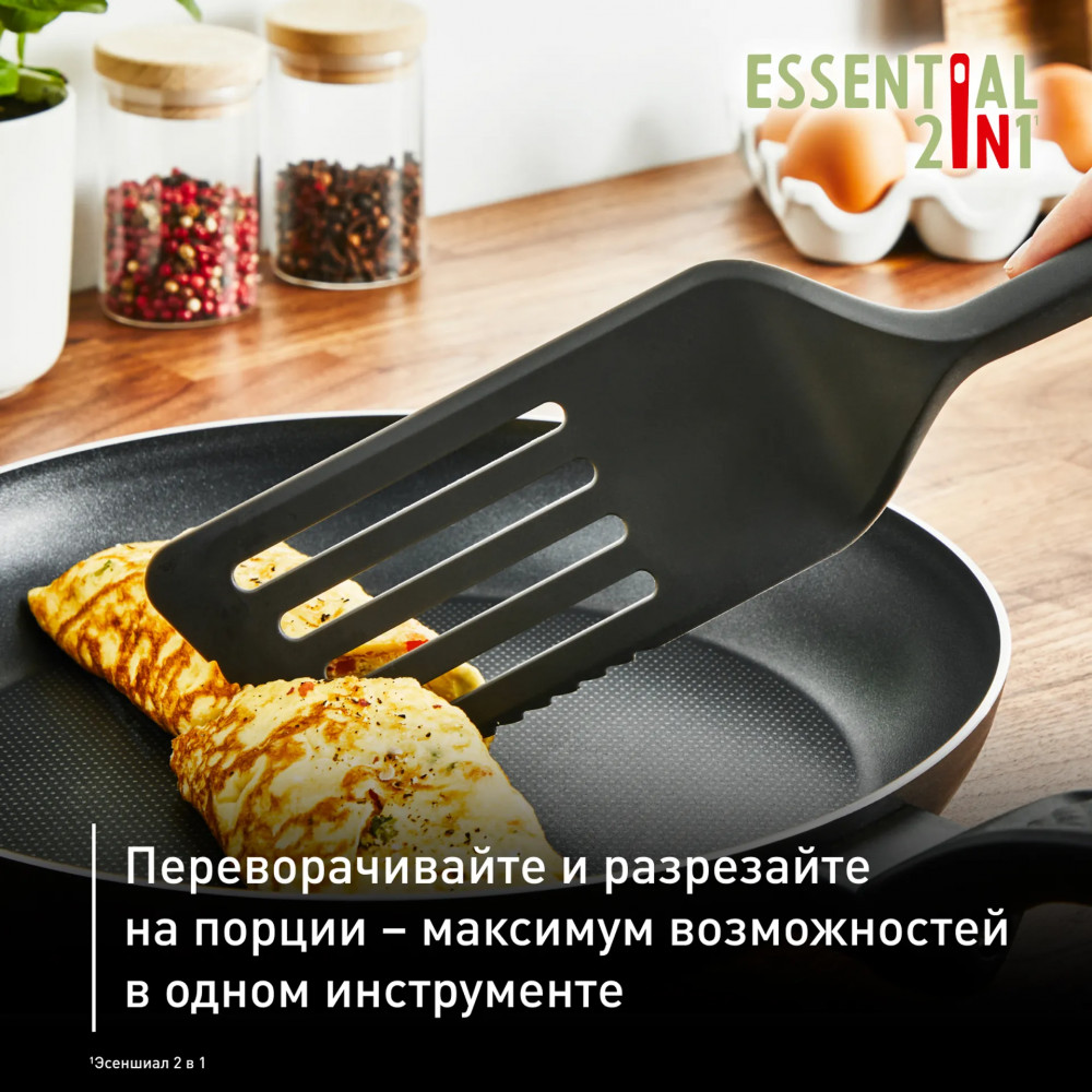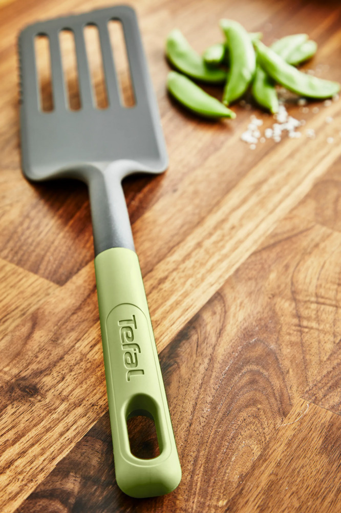 Длинная лопатка Tefal Essential — это универсальный и функциональный аксессуар, который идеально подойдет для переворачивания и разрезания порций продуктов в процессе приготовления. Лопатка выполнена из термостойкого материала, который выдерживает температуру до 230°C, что делает её подходящей для использования при жарке, запеканке и других горячих блюдах. Благодаря зубчатому краю, лопатка позволяет легко нарезать продукты, не повреждая их, и идеально подходит для использования с антипригарным покрытием. Это делает её незаменимым инструментом для кухни. Кроме того, лопатка легко моется в посудомоечной машине, что значительно экономит время на уборке, и имеет специальное отверстие для подвешивания, что удобно для хранения на кухне. Длинная лопатка Tefal Essential — это практичный и долговечный выбор для тех, кто ценит удобство и многофункциональность на кухне.