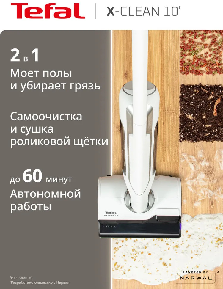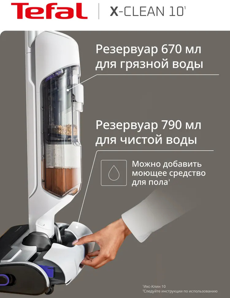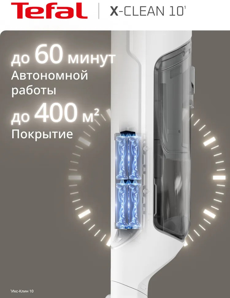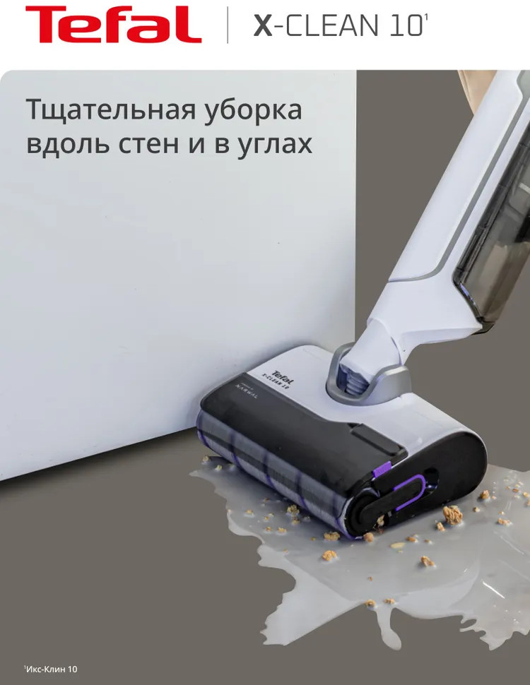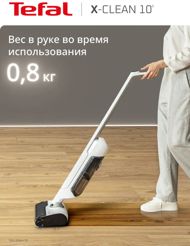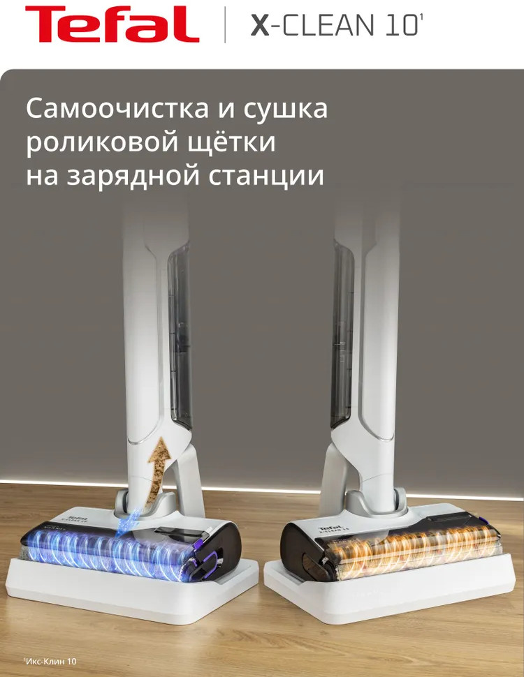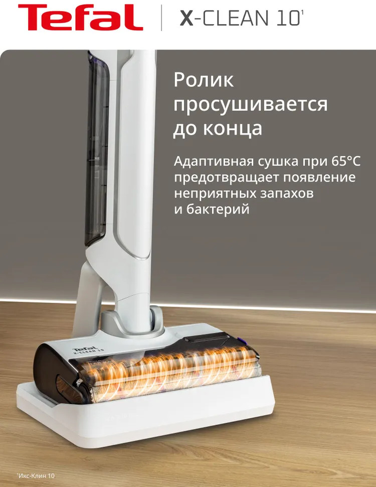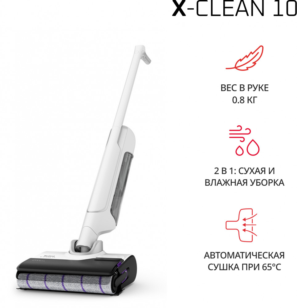 Быстрая и лёгкая уборка вместе с моющим пылесосом X-Clean 10. Отсутствие проводов, функция самоочистки и сушки сделают уборку проще и эффективнее. Устройство одновременно моет полы и всасывает грязь, эффективно удаляя с напольных покрытий даже мокрые загрязнения и жидкости. Пыль, шерсть, следы от обуви, разлитый сок и остатки еды на полу теперь легко убрать одним движением. Благодаря специальному скребку и смачиванию водой роликовая щётка очищается на протяжении всей уборки, исключая возможность загрязнения пола и гарантируя идеальный результат. Вам не придётся контактировать с грязью благодаря функции самоочистки и сушки роликовой щётки горячим воздухом до 65°C. Останется только слить воду, и пылесос будет готов к следующей уборке. Пылесос раскладывается на 180° для эффективной и комфортной уборки под диваном, кроватью, креслом и другой низкой мебелью. Умный датчик автоматически подстраивает мощность всасывания и объём подачи воды с учётом степени загрязнения, отображая все детали уборки на LED-дисплее.