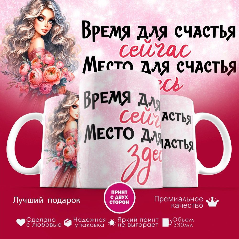 TopPoshiv Кружка с принтом «Время для счастья сейчас, место для счастья здесь 2»новинка -25%