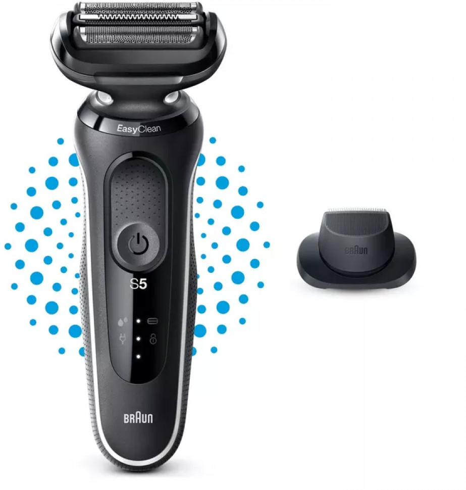 Очень точная передача уровня зарядки, состояния аккумулятора, подробных сведений об очистке и состоянии сетки. Полная зарядка занимает всего 1 час. Быстрой 5-минутной зарядки достаточно для 1 сеанса беспроводного бритья. Имеет характерный точечный рисунок Braun. Обеспечивает безопасное и надёжное использование даже во влажных условиях. Автоматически адаптируется к любому напряжению между 100 В и 240 В. Это позволяет использовать его практически в любой стране мира.