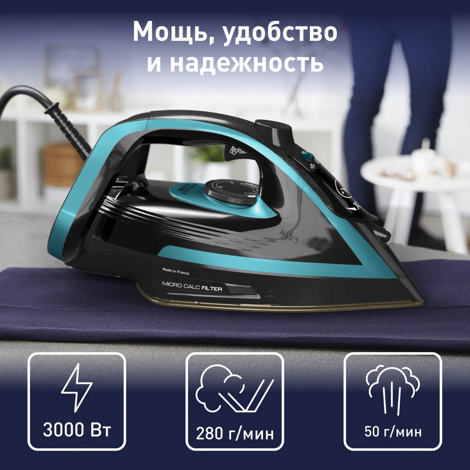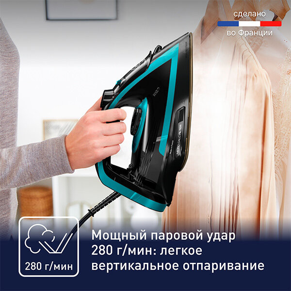 Подарите своим вещам уход, которого они действительно достойны вместе с Puregliss. Этот мощный и производительный утюг способен справиться со складками и заломами на любой ткани и оснащен системой Micro Calc Filter, которая удерживает накипь, защищая вашу одежду и домашний текстиль от образования пятен во время глажения Насладитесь настоящим европейским качеством — утюг разработан и произведен во Франции и остается ремонтопригодным в течение целых 15 лет. Запатентованная технология Micro Calc Filter удерживает накипь, защищая вашу одежду и домашний текстиль от образования пятен во время глажения Оптимально распределяет пар по ткани и превосходно скользит В вертикальном положении при бездействии утюг выключится через 8 минут. В горизонтальном положении при бездействии утюг выключится через 30 секунд. Высокая температура пара уничтожает до 99.99% бактерий