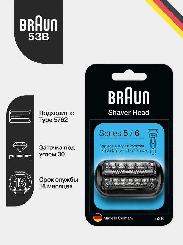Идеально острый режущий блок и сетка 53B для электробритв Braun Series 5, 6! Если вы являетесь обладателем бритвы из серии Braun Series 5 — ваше лицо всегда будет выглядеть ухоженным и гладким! Только не забывайте к нужному сроку докупать сменные детали, которые имеют свойство изнашиваться со временем. А ещё лучше — имейте всегда некоторый запас этих деталей в ванной.