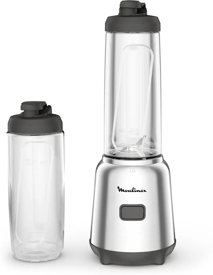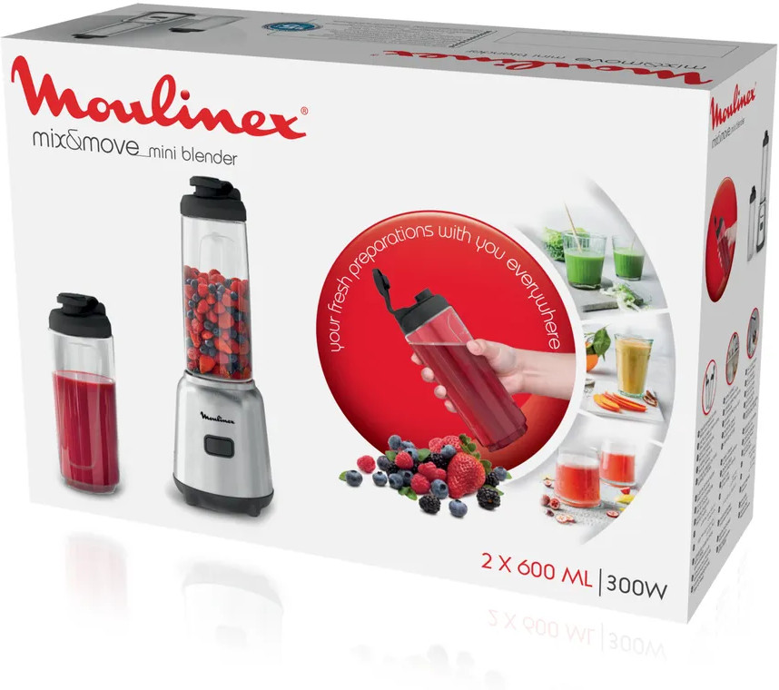 Мини-блендер Mix & Move от Moulinex объединяет в себе превосходную производительность и удобный формат для комфортного смешивания ингредиентов и наслаждения любимыми напитками, куда бы вы ни отправились. В комплект входят 2 удобные бутылки из тритана, в которых можно приготовить смузи и сразу взять его с собой. Благодаря компактному дизайну устройство и аксессуары удобно хранить, а съемные лезвия облегчают очистку после каждого использования. Откройте для себя идеальный персональный блендер с мощностью 300 Вт и удобными функциями. |