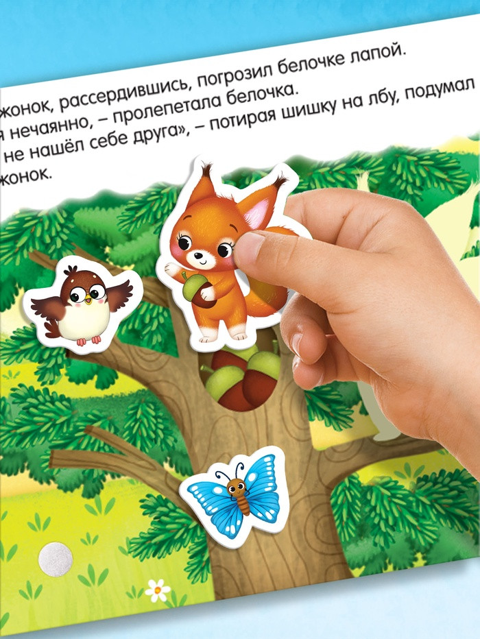 В данный момент этот товар отсутствует в продаже. Возможно, у нас найдется аналогичный или похожий товар здесь. Обучающая книга с липучками направлена на расширение кругозора. Добрая сказка понравится ребёнку, ведь он сможет оживить историю — героев на липучках можно перемещать со страницы на страницу. Благодаря этой сказке малыш узнает, что такое дружба и как важно иметь рядом настоящих друзей.