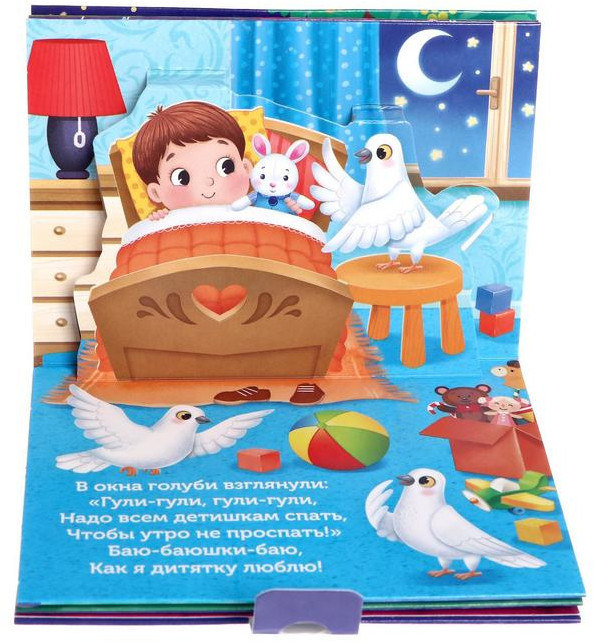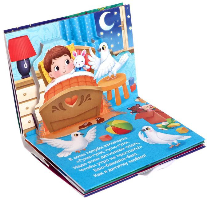 В данный момент этот товар отсутствует в продаже. Возможно, у нас найдется аналогичный или похожий товар здесь. Серия: Книги-панорамки Книжка-панорамка «Баю-баюшки-баю» станет идеальным выбором для спокойного семейного вечера с малышом. В книге представлена нежная колыбельная, созданная для самых маленьких, которая помогает настроиться на спокойный лад перед сном. Благодаря объёмным иллюстрациям страницы оживают, превращая процесс чтения в волшебное путешествие.