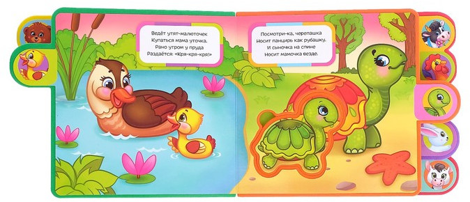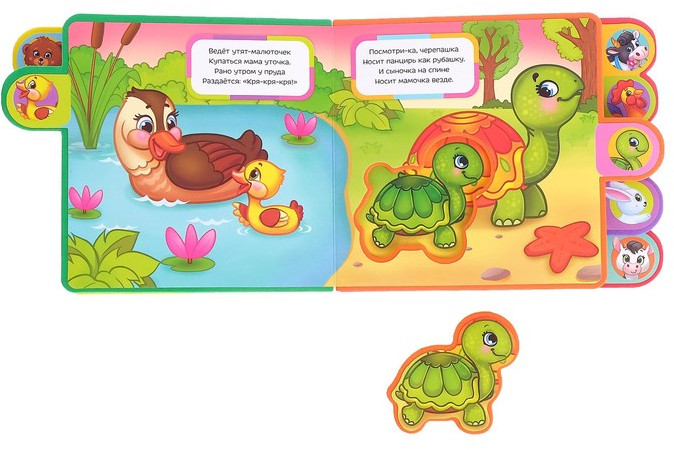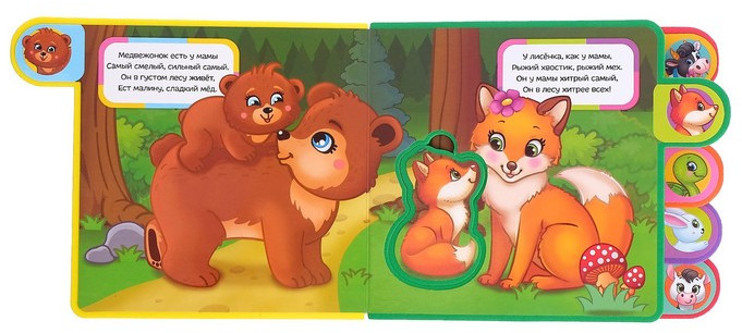 • каждая страница содержит красочные изображения животных и их детёнышей, расширяя кругозор ребёнка;