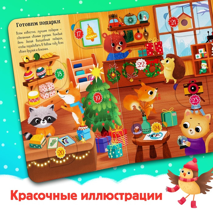 Книга с окошками «Адвент-календарь»В данный момент этот товар отсутствует в продаже. Возможно, у нас найдется аналогичный или похожий товар здесь. Каждый год жители Волшебногорска готовятся к главному зимнему празднику. Хотите знать, как встретить Новый год так же весело и интересно, как они? Тогда открывайте по одному окошку каждый день декабря, начиная с первого числа, и готовьтесь к празднику. Странички и окошки сделаны из картона, поэтому книга будет радовать вас долгое время. Внутри малыш найдёт красочные тематические иллюстрации, милых персонажей и интересные задания. Издание познакомит малыша с традициями встречи Нового года и поможет скоротать время в ожидании праздника. |