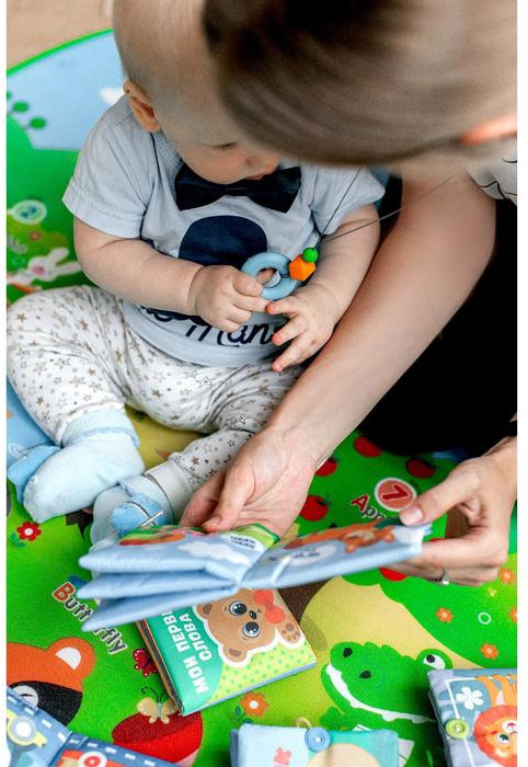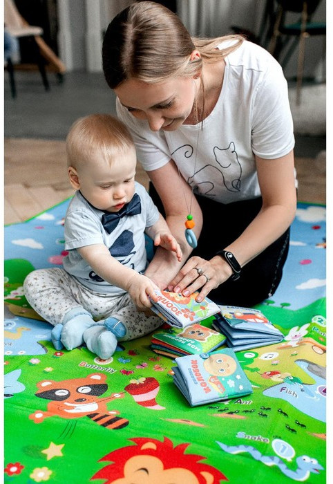Книжка выполнена из мягкого текстиля с шуршащими элементами, которые делают игру тактильной и звуковой. В ней 8 страниц с простыми и понятными изображениями для самых маленьких, а мягкий переплёт обеспечивает безопасность и удобство использования.