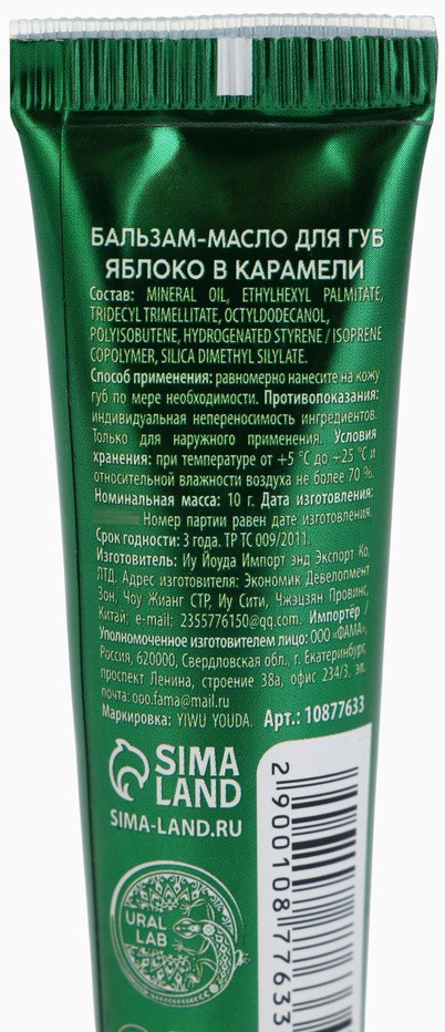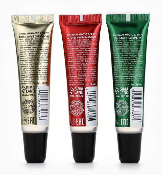 Бальзам-масло для губ «Яблоко в карамели»: Mineral Oil, Ethylhexyl Palmitate, Tridecyl Trimellitate, Octyldodecanol, Polyisobutene, Hydrogenated Styrene / Isoprene Copolymer, Silica Dimethyl Silylate.