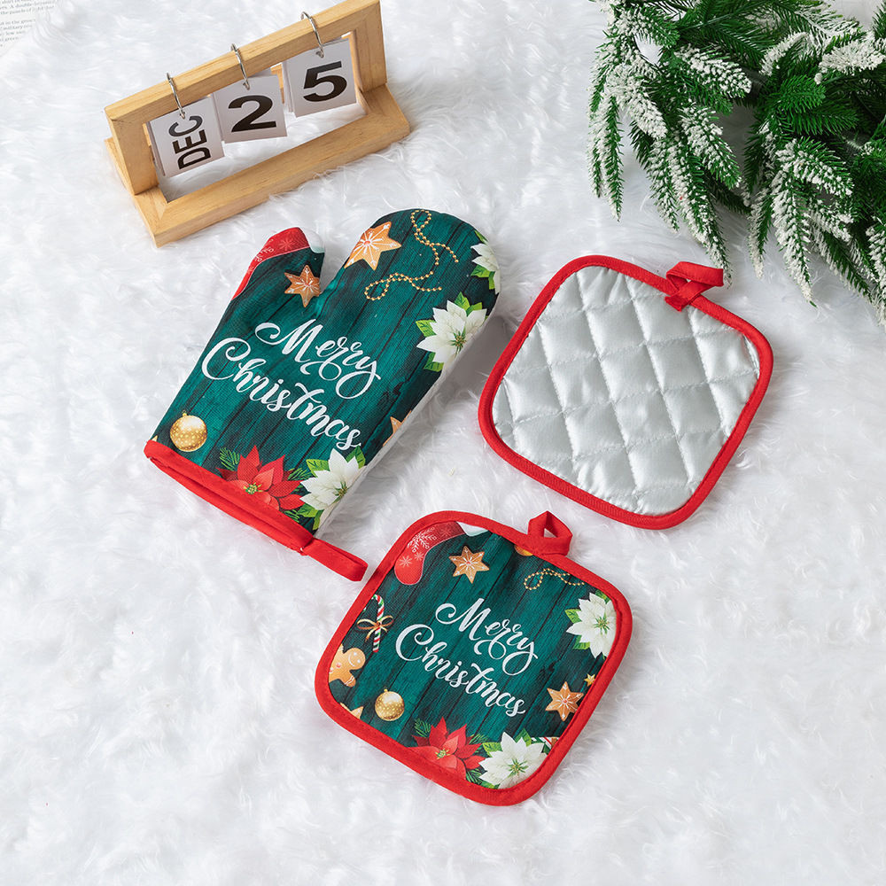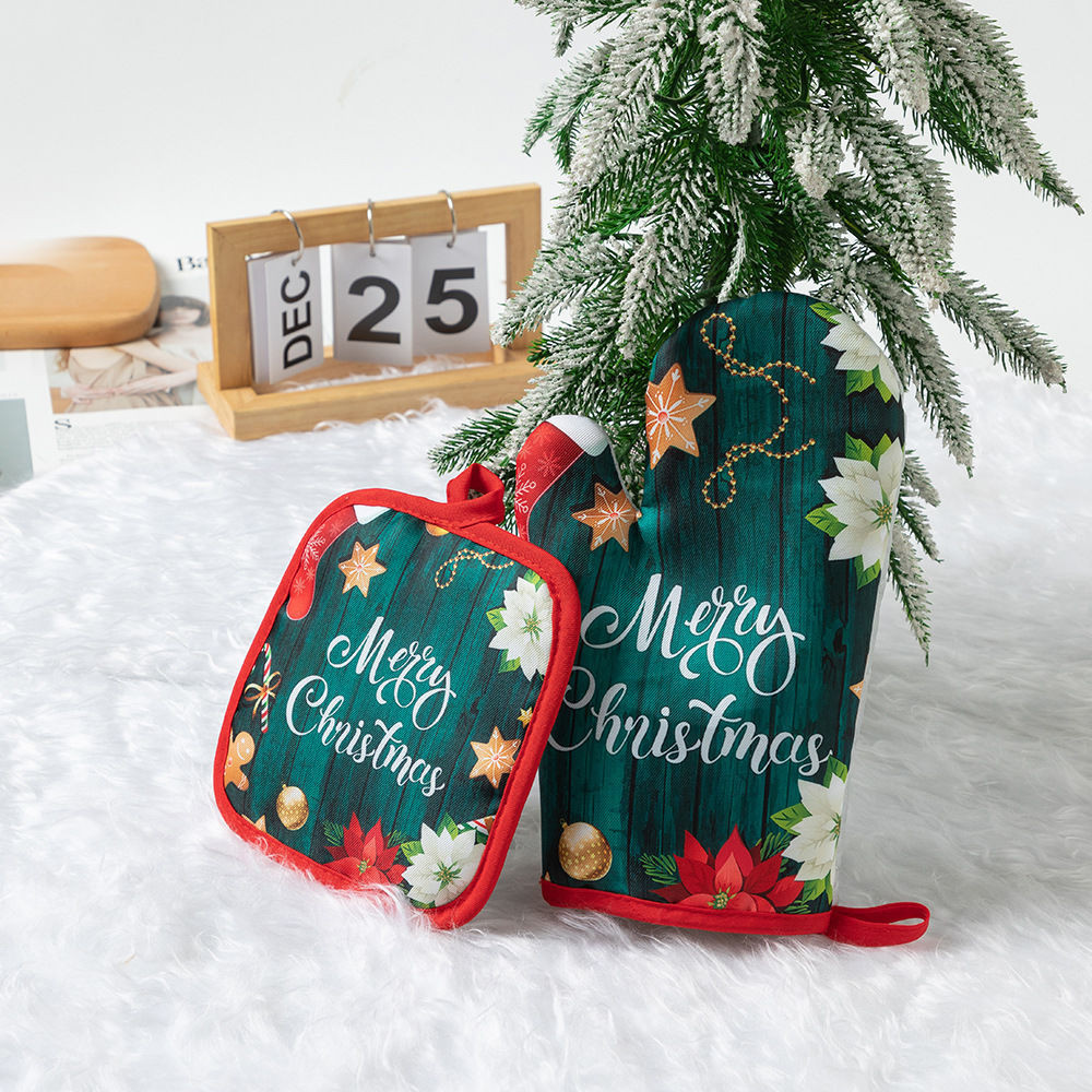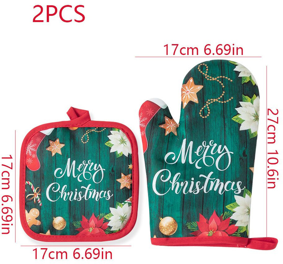 Новогодний кухонный комплект рукавица и прихватка с ярким принтом. Прекрасный подарок для женщин и девушек мамы, сестры на Новый Год и Рождество. |
