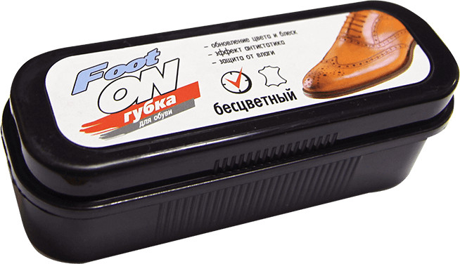 Губка для обуви «Foot ON» бесцветная предназначена для бережного ухода за кожаными изделиями. Средство эффективно очищает поверхность обуви от пыли и мелких загрязнений, одновременно обновляя цвет и восстанавливая естественный блеск. Губка обеспечивает защиту от влаги, предотвращая появление разводов и пятен, и подходит для регулярного использования между основными чистками.