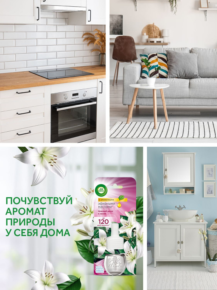 Погрузитесь в богатый аромат вечерних цветов и сочных фруктов, окутанный нежными мускусными нотками. Это небольшое стильное устройство, которое автоматически борется с неприятными запахами день за днем. Аромат наполнит ваш дом изысканными нотками цветущей лилии и нежного шелка.