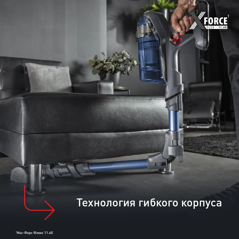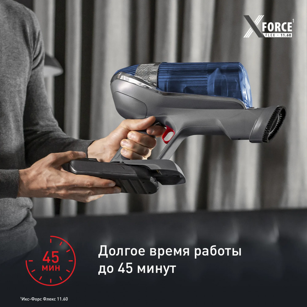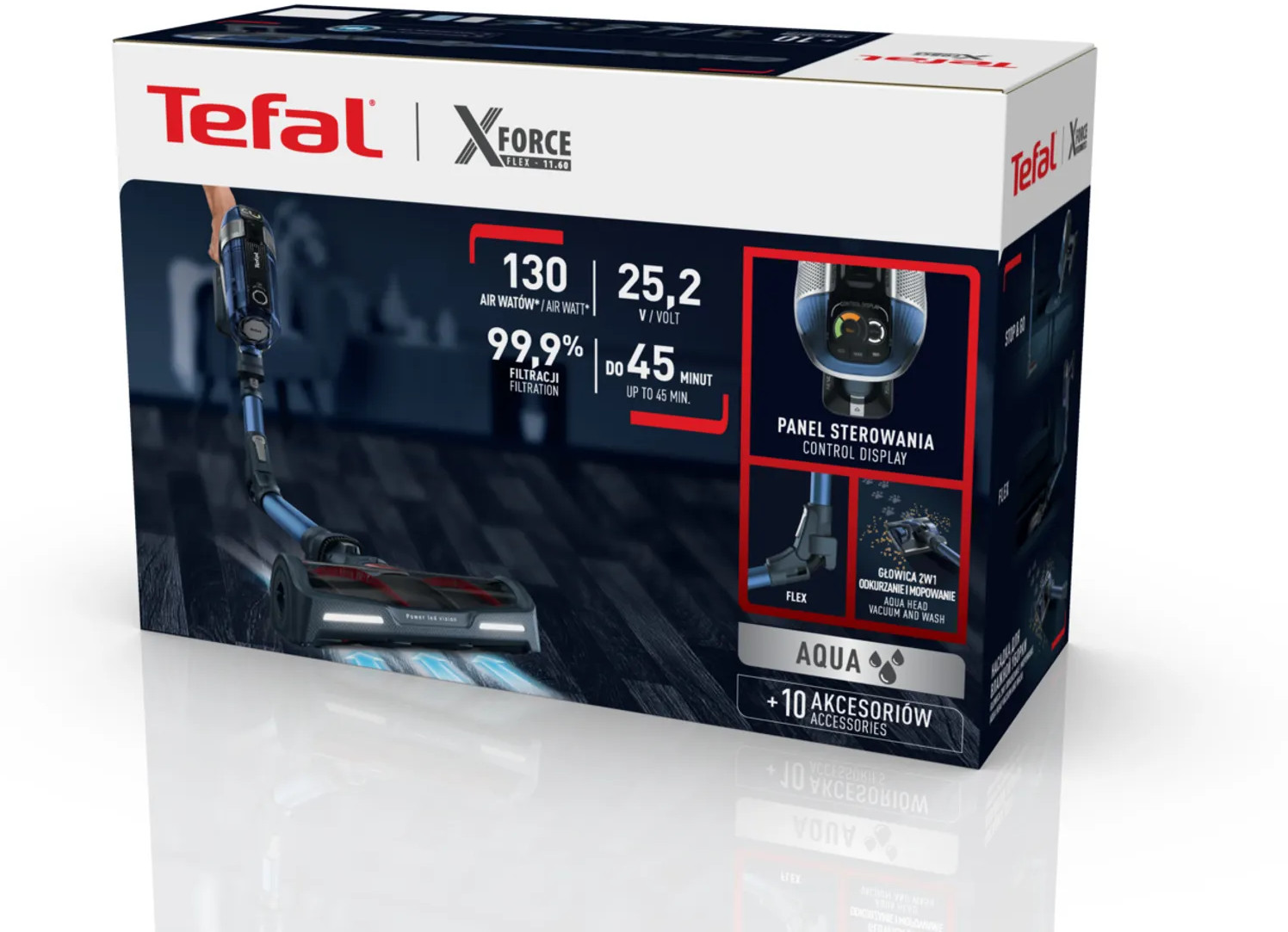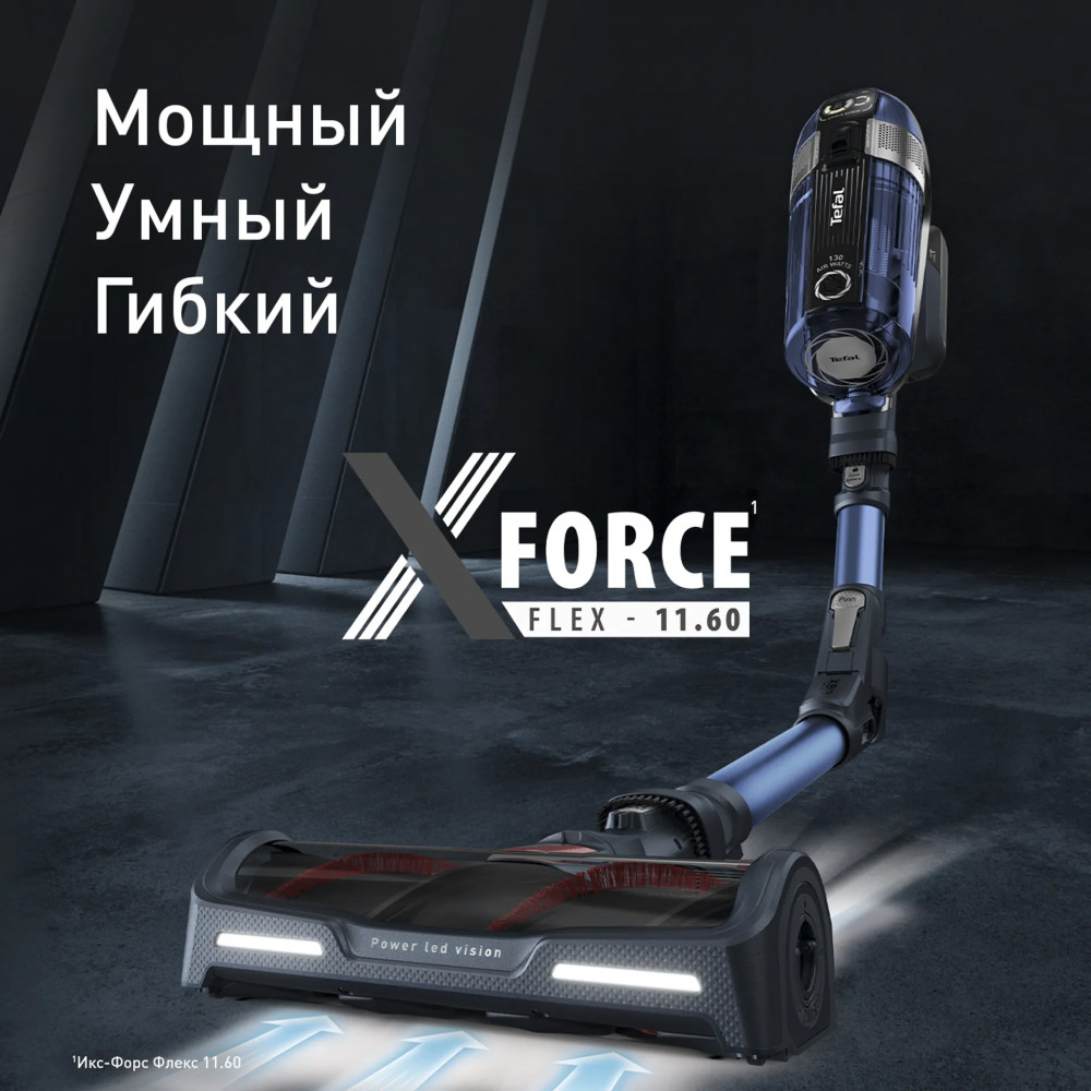 Беспроводной пылесос X-Force Flex 11.60 — это максимальная производительность и лучшее качество уборки от Tefal. Новый цифровой мотор DigitalForce обеспечивает высокую мощность всасывания для качественной уборки как твердых, так и ковровых покрытий. Гибкий корпус позволит с лёгкостью убраться под мебелью и в труднодоступных местах. Благодаря новейшему поколению цифрового мотора от Tefal, линейка X-Force обладает высокой мощностью всасывания для тщательной уборки любых поверхностей. Гибкий корпус для легкой уборки в труднодоступных местах и под низкой мебелью в 4 раза дальше. Дисплей управления позволяет регулировать уровень мощности, время работы и отслеживать заряд батареи. Уникальная насадка Aqua делает ежедневную уборку полноценной и экономит ваше время: теперь вы можете пылесосить и мыть полы в 2 раза быстрее — даже в самых труднодоступных местах и углах. Наслаждайтесь беспрерывной и качественной уборкой во всем доме благодаря съемной литиевой батарее, которую удобно заряжать в любом месте. Обеспечьте чистоту воздуха в вашем доме благодаря эффективному задержанию собранной пыли, включая аллергены и мелкие частицы. Попробуйте парковку Stop&Go, которая позволяет зафиксировать насадку для пола и трубку пылесоса в вертикальном положении для быстрого переключения с уборки пола на уборку других поверхностей с портативным пылесосом.