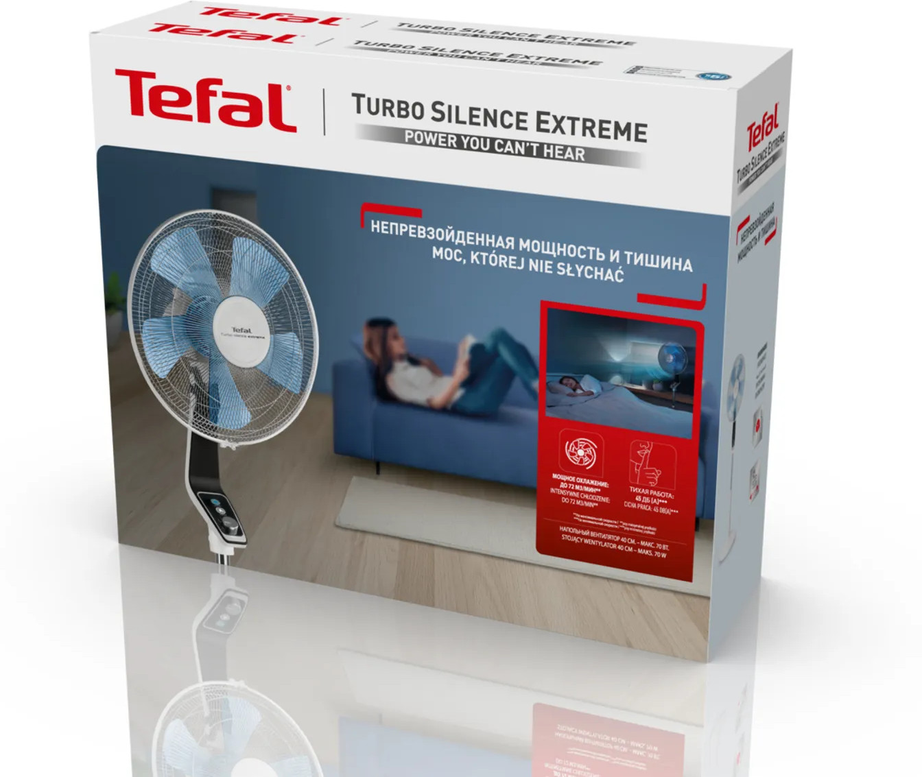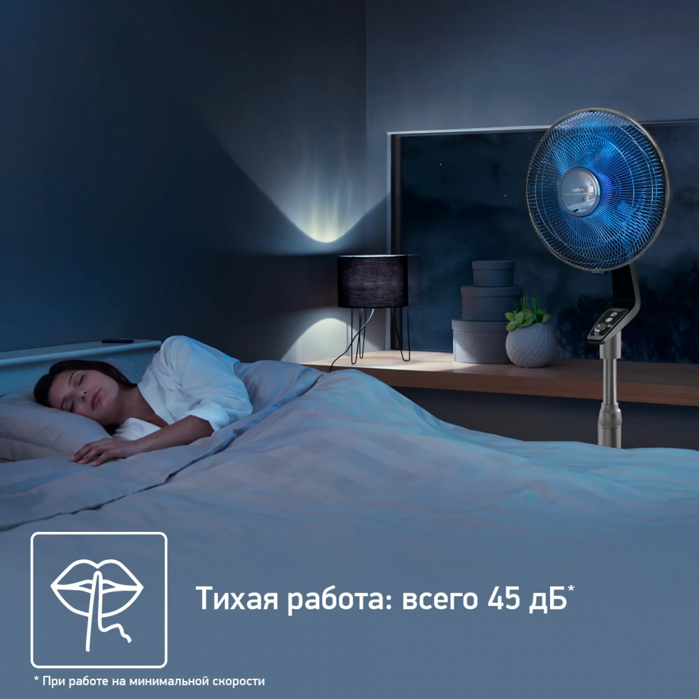 Вентилятор Turbo Silence Extreme освежает воздух в помещении быстро и бесшумно. Он обладает уникальным набором настроек: от ночного режима Silent Night до мощного Turbo Boost для оптимального комфорта в вашем доме. Эргономичный и современный дизайн позволит вентилятору легко вписаться в любой интерьер. Вентилятор быстро и эффективно охлаждает помещение при мощности воздушного потока до 72 м³/мин на максимальной скорости. Устройство работает практически бесшумно — всего 45 дБ(А) на минимальной скорости, обеспечивая комфортное и тихое охлаждение воздуха и днем, и ночью. Для создания идеального климата в вашем доме вентилятор оснащен функциями автоматического поворота и изменения направления, а для комфортного использования — интуитивно понятной панелью управления. Вентилятор удобно регулируется по высоте для обдува на том уровне, который комфортен для вас и ваших близких, а благодаря изящному дизайну устройство гармонично впишется в любой интерьер.