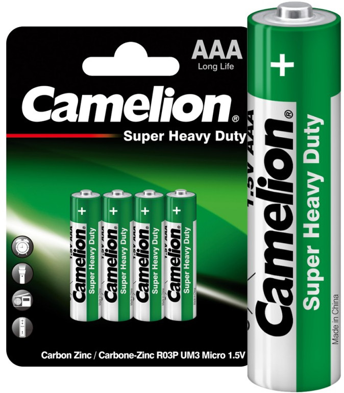 Батарейки Camelion R6P-BP4G AA 1.5В подходят для использования в бытовой технике. Комплект из 4 батареек с емкостью 960 мА/ч. Солевые батарейки предназначены для устройств с равномерным и невысоким энергопотреблением (настенные часы, пульты дистанционного управления, игрушки, фонари и др.) Батарейки Camelion R6, напряжение 1,5 В, емкость 960 мА/ч, , использовать при температуре от −18 до +55°C, хранить в сухом помещении при температуре от +15 до +25°C. Размер упаковки 84×114×15 мм. Срок хранения 3 года. Все батарейки торговой марки Camelion сертифицированы согласно российскому стандарту ГОСТ.