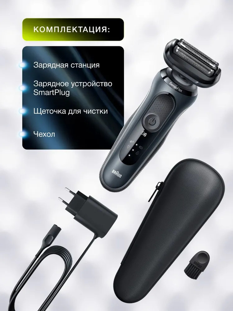 Дорожную электрическую бритву легко хранить и перевозить с собой в специальном футляре, который идет в комплекте. Дополнительно, можно приобрести насадки: грумер, для очищения лица, триммер, щетины, легкое переключение делает прибор еще более универсальным. Сделайте процесс бритья легким вместе с Braun Series 6!