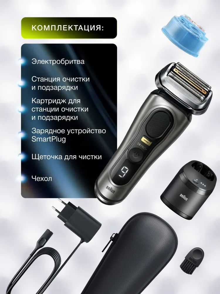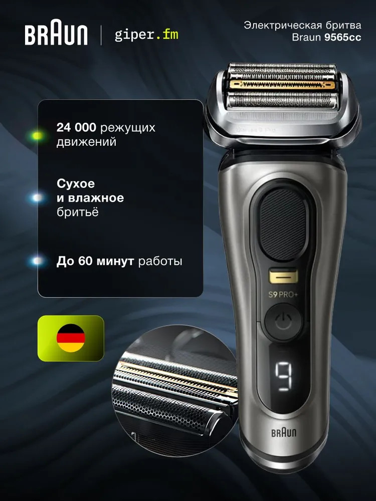 Электробритва Series 9 Pro + 9565cc — это наша самая совершенная бритва на сегодняшний день с инновационной бритвенной головкой с 5 бреющими элементами. Включает новый триммер ProLift, который мягко срезает жёсткие волосы 1-дневной, 3-дневной или даже 7-дневной щетины. Уникальная технология Sonic обеспечивает захват большего количества волос за счёт 10 000 микровибраций.