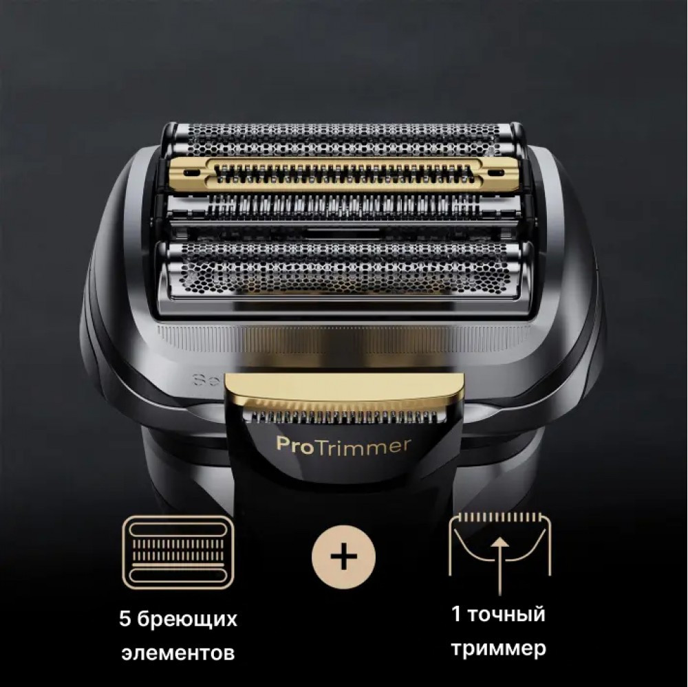 5 идеально синхронизированных бреющих элементов обеспечивают исключительную эффективность и комфорт при каждом движении, даже в случае длинных и сложных волос. Встроенный прецизионный триммер ProTrimmer, усиленный хирургической сталью, обеспечивает максимальную эффективность стрижки даже на усах, бакенбардах и под носом.