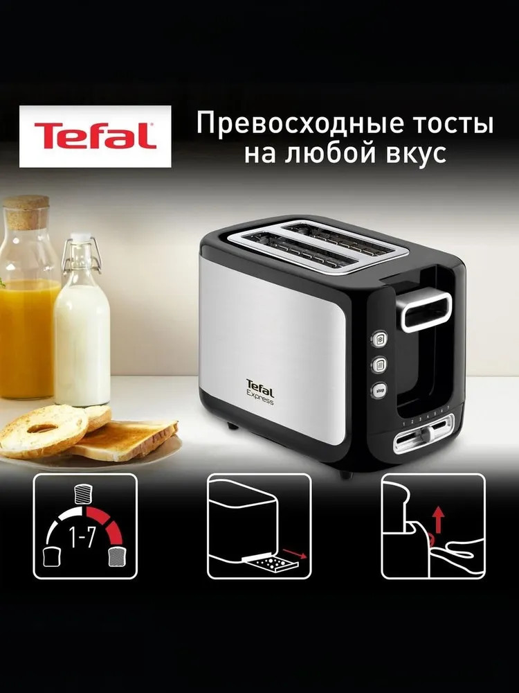 Серия: Express Познакомьтесь с тостером Express — ярким помощником с продуманным функционалом, с помощью которого на вашем столе каждый день будет вкусные и хрустящие тосты! Он очень прост и удобен в использовании: два широких отсека для хлеба любого размера; регулировка степени поджаривания хлеба от 1 до 7 для таких тостов, как вы любите; кнопка отмены для остановки процесса приготовления тостов на любом этапе; функция разморозки для равномерного разогрева замороженного хлеба; функция подогрева для поддержания температуры готовых тостов; удобный поддон для крошек для удобной очистки; приподнимите ручку, чтобы удобно вынуть готовые тосты; мощность — 850 Вт. |