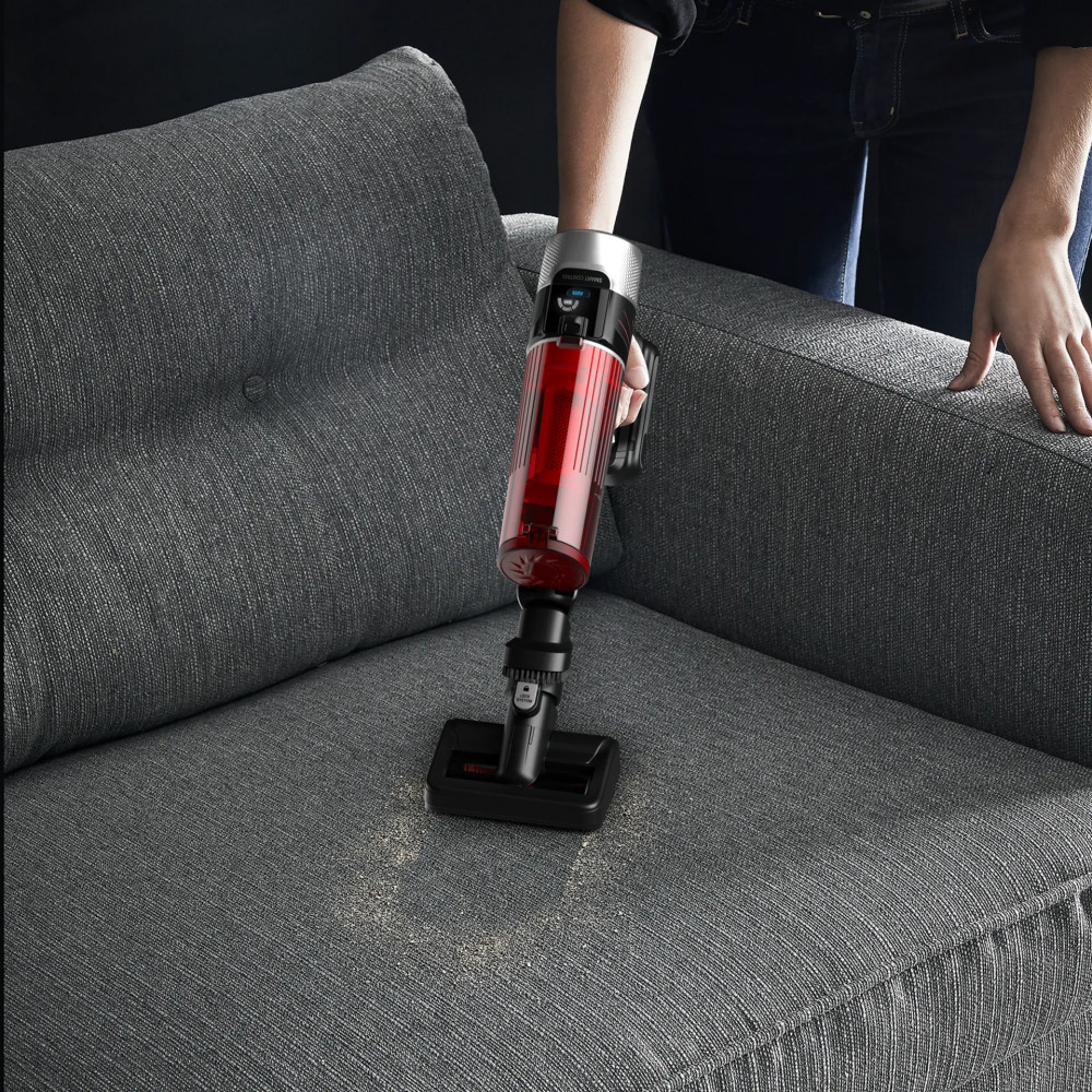 Батарея обеспечивает до 45 минут автономной работы, что позволяет провести тщательную уборку в квартире без перерыва на подзарядку. Умная панель показывает уровень заряда аккумулятора для более удобного управления параметрами при уборке. Система фильтрации очищает всасываемый воздух и задерживает до 99,9% пыли, грязи и других самых мелких частиц, вызывающих аллергию и астму.