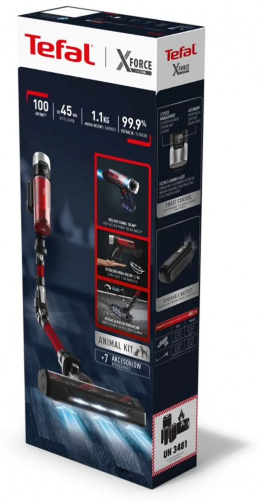 Мощный и сверхлёгкий Tefal X-Force Flex 9.60 перевернёт ваши представления об эффективной, быстрой и комфортной уборке. Благодаря высокой мощности всасывания пылесос устраняет самые стойкие загрязнения без перерыва на подзарядку в течение 45 минут, а уникальная система Flex гарантирует безупречный порядок под низкой мебелью и в труднодоступных местах. Вертикальный пылесос обладает мощным мотором с силой всасывания до 100 аэроватт. Этого более чем достаточно для эффективного сбора крупной и мелкой пыли на всех типах покрытий — от твёрдых до ковровых. Благодаря весу ручного пылесоса в 1,1 кг устройство отличается большей манёвренностью, его удобно удерживать одной рукой и без труда перемещать по дому, обеспечивая чистоту в ежедневной уборке. Инновационная технология позволяет использовать беспроводной пылесос в удобном положении, благодаря чему можно проводить более тщательную уборку под мебелью без болей в спине и с максимальной эффективностью. Tefal X-Force Flex 9.60 автоматически определяет тип поверхности и подбирает оптимальную мощность всасывания для напольного покрытия — гладкого или коврового.