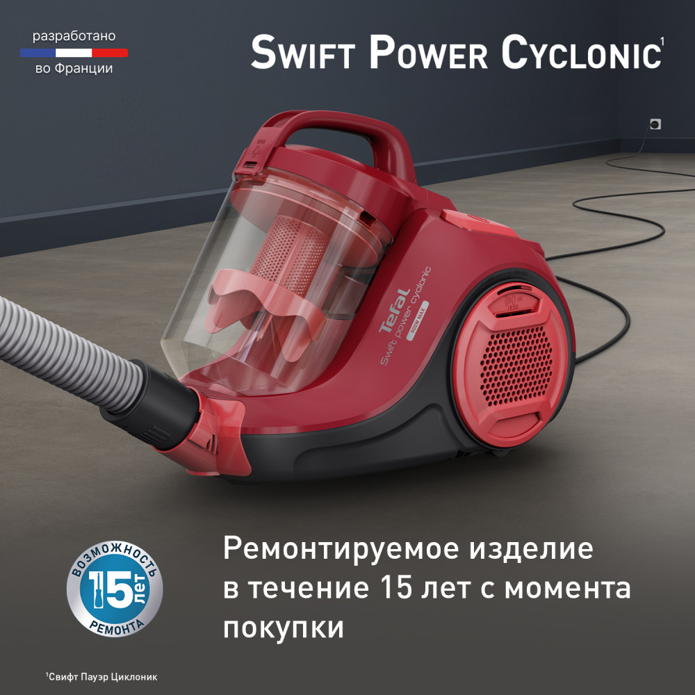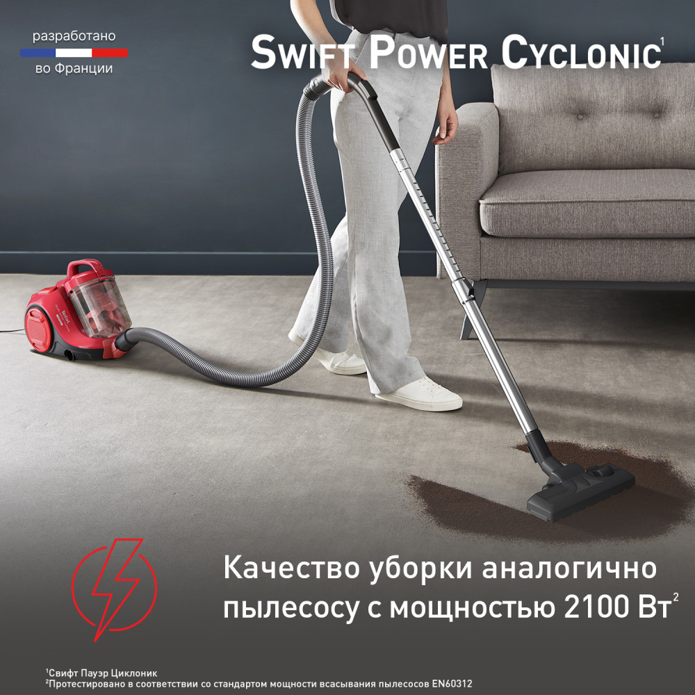 Серия: Swift Power Cyclonic Swift Power Cyclonic — это мощный и компактный пылесос с контейнером, который идеально подходит для ежедневной уборки. Благодаря усовершенствованной циклонной технологии всасываемый воздух полностью очищается от пыли и грязи, оставляя комнату идеально чистой. Высокоэффективная насадка в сочетании с технологией Effitech обеспечивает безупречное качество уборки на любых полах. Благодаря длинному шнуру питания с радиусом 7.6 м и компактному корпусу пылесос удобно использовать даже в больших помещениях и комфортно хранить в шкафу. |