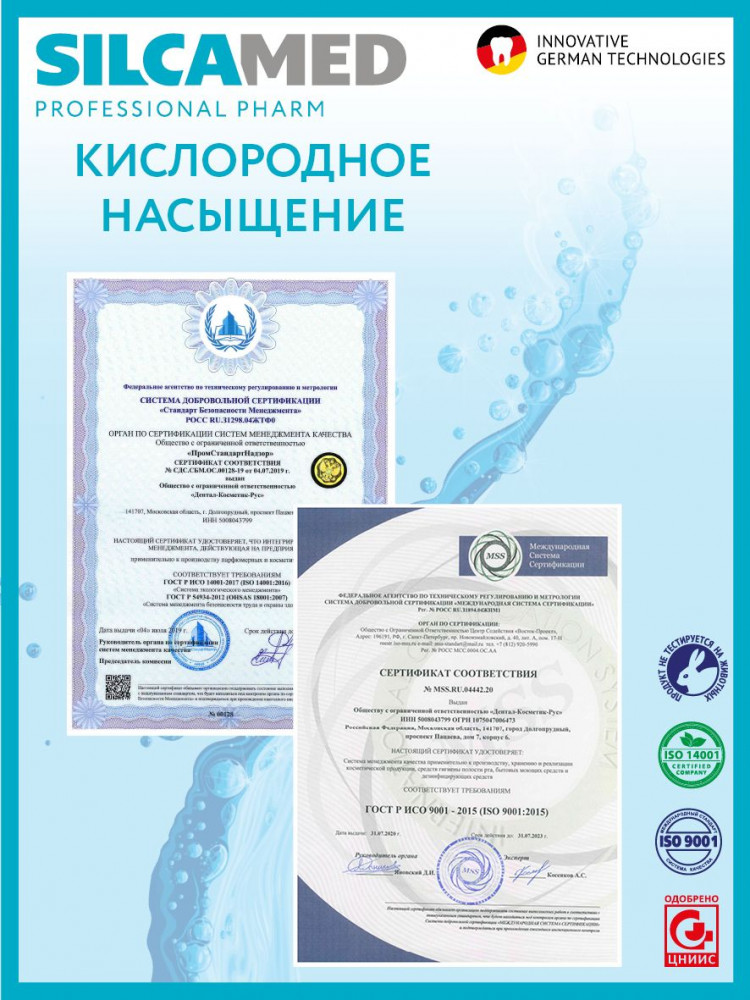 | Компания производит продукцию высокого качества для России и стран СНГ, активно сотрудничает с ведущими научно-исследовательскими институтами и стоматологическими клиниками, создавая новые разработки. Совершенствуются рецептуры и производственные процессы, осуществляется постоянный контроль качества сырья и конечной продукции, благодаря которому средства гигиены компании отвечают самым высоким стандартам. |