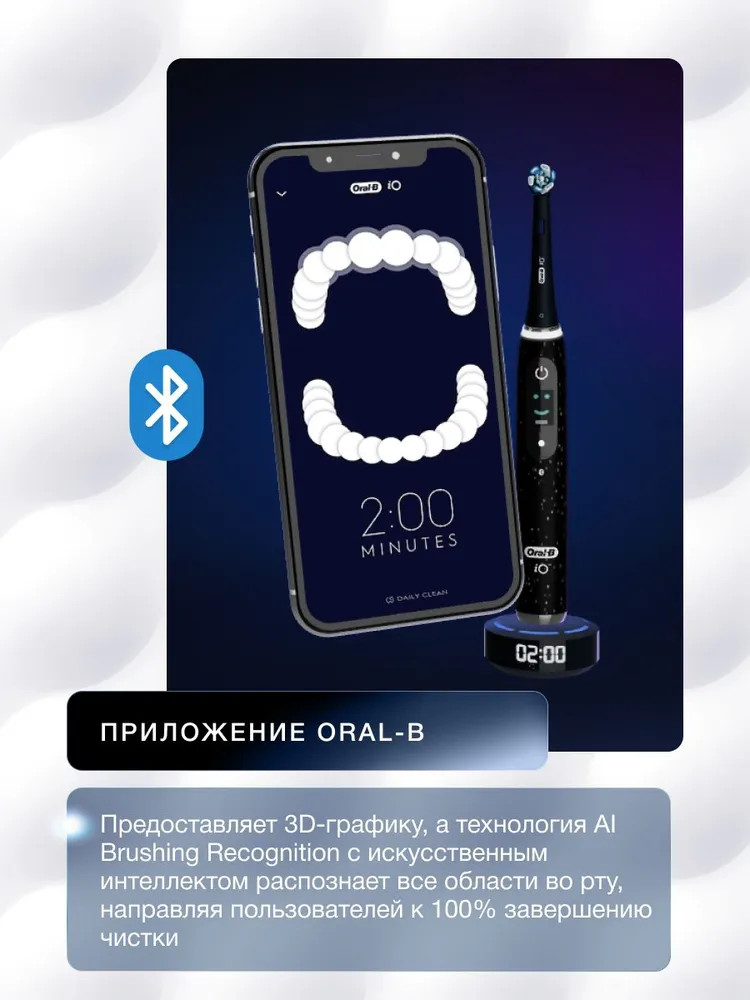 Откройте революцию в уходе за полостью рта с новой электрической зубной щеткой Oral-B iO M10.1B4.2AD! Высокотехнологичная щетка нового поколения обеспечивает более эффективный уход по сравнению с традиционными моделями. Благодаря технологии 3D-отслеживания с искусственным интеллектом она распознает три типа поверхностей зубов и направляет процесс чистки, предотвращая появление зубного камня и кариеса