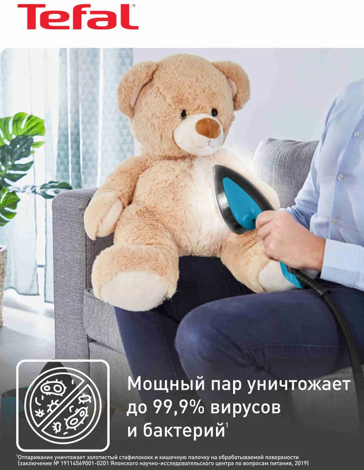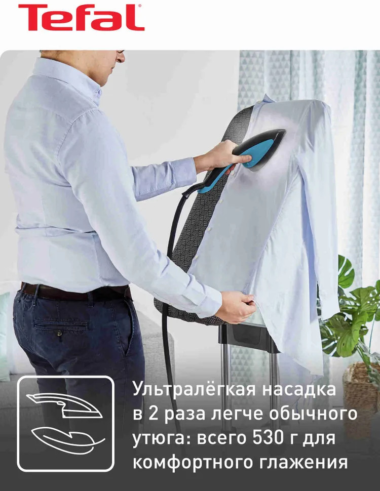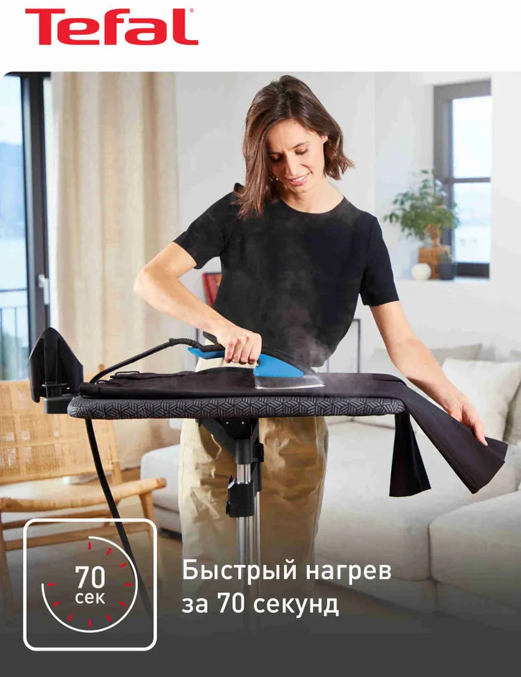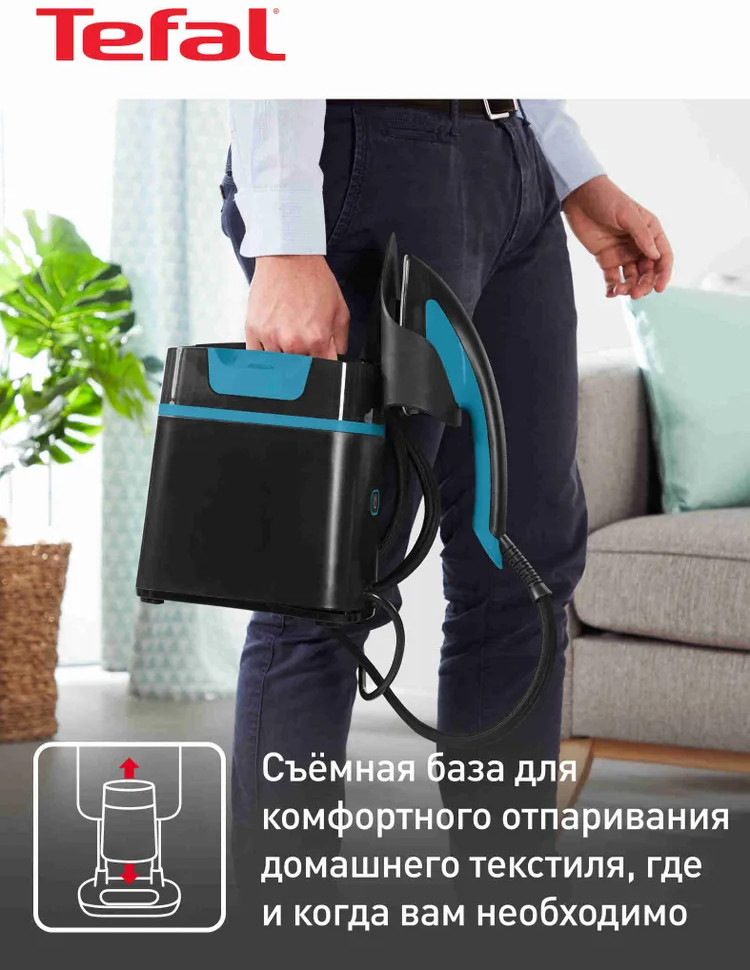 Система нагревается за 70 секунд. Бойлер создаёт пар, температура которого безопасна как для плотных, так и для деликатных тканей вроде шёлка. Пар подаётся с постоянной скоростью и проникает вглубь ткани, помогая разглаживать даже стойкие складки изнутри и уничтожая неприятные запахи и бактерии. Встроенная система защиты от накипи поддерживает высокую производительность устройства и мощность пара и снимает необходимость в регулярной очистке бойлера. Лёгкую компактную базу с утюгом можно переносить в руках или перевозить на встроенных в систему колёсах, например, для отпаривания дивана или штор. Паровую гладильную систему удобно хранить в вертикальном положении в шкафу.