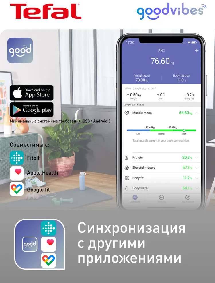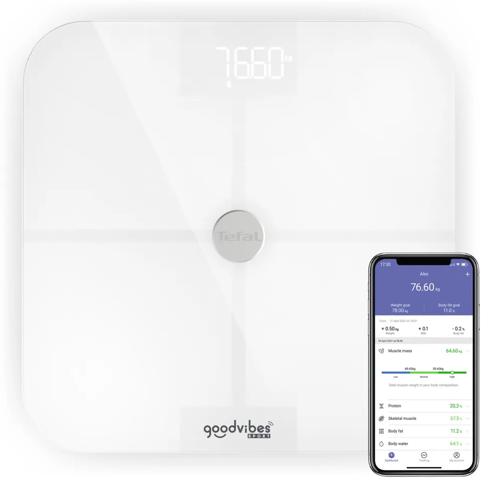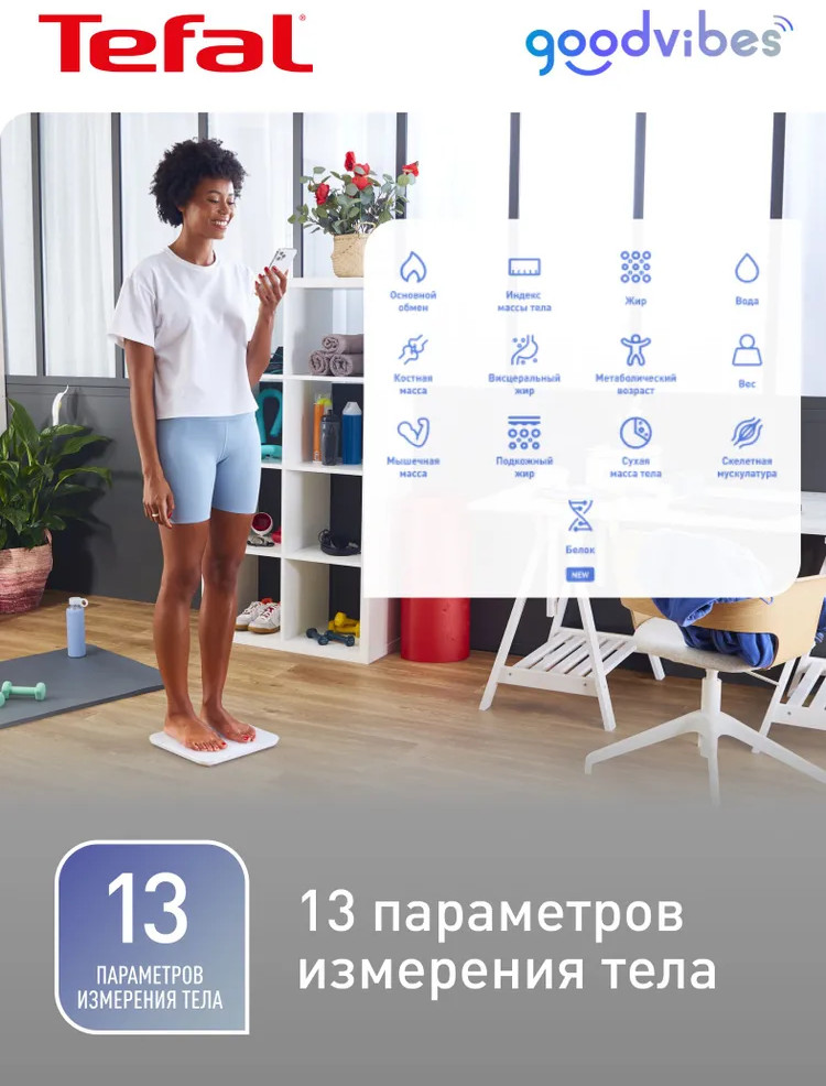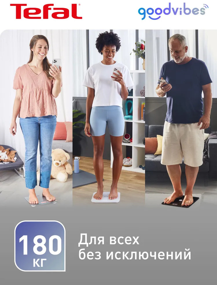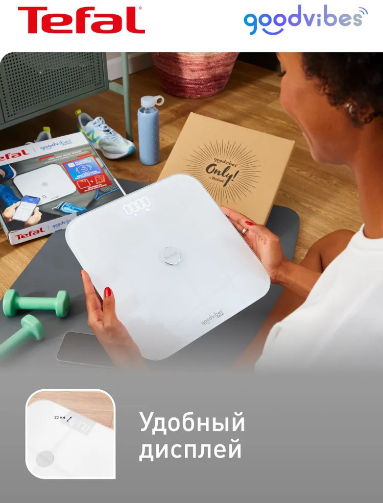 Умные весы Tefal Goodvibes Sport BM9640S1 — это ваш надежный помощник на пути к здоровью и спортивным достижениям. Оснащенные современными технологиями, эти весы помогут вам лучше понять ваше тело и поставить правильные цели.