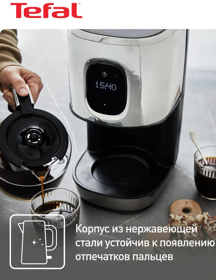 💳 Оплатить за товар можно при получении 🇰🇿 Есть бесплатная доставка по Казахстану 🎁 Копите бонусы с каждой покупки Серия: Majestuo Элегантная капельная кофеварка с интуитивно понятным сенсорным дисплеем, который отображает всю необходимую информацию. Съемный резервуар для воды для легкого наполнения и очистки. Функция Aroma для получения вашего идеального кофе — легкого, крепкого или насыщенного. Удобный таймер для заваривания кофе к нужному вам моменту. Функция поддержания температуры сохранит ваш кофе горячим, ароматным и готовым к употреблению в любой удобный вам момент. Умная пауза позволяет наливать кофе еще до окончания цикла приготовления напитка. Программа удаления накипи подскажет, когда кофеварку необходимо очистить от накипи, а также проведет вас по каждому этапу процесса. Элегантная капельная кофеварка с удобным сенсорным дисплеем, который отображает всю необходимую информацию, включая напоминание о необходимости очистки от накипи и таймер |