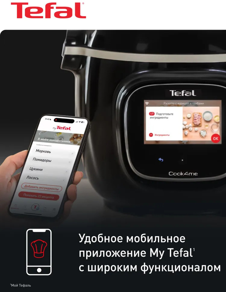 Мультиварка-скороварка Tefal Cook4me Touch CY912832 — это ваш идеальный помощник на кухне для быстрого и вкусного приготовления блюд без вашего участия. Умная мультиварка оснащена большим сенсорным экраном, который делает использование бытовой техники для дома максимально удобным. Вы всегда найдете новые рецепты благодаря обновлению приложения по Wi-Fi, поэтому вы постоянно можете получать вдохновение для кулинарных экспериментов. Приготовление еды стало в 6 раз быстрее благодаря усовершенствованным технологиям — это существенно упростит и с экономит ваше время пребывания на кухне. Интуитивно понятное меню управления ручной мультиварки позволяет легко настраивать весь процесс готовки.