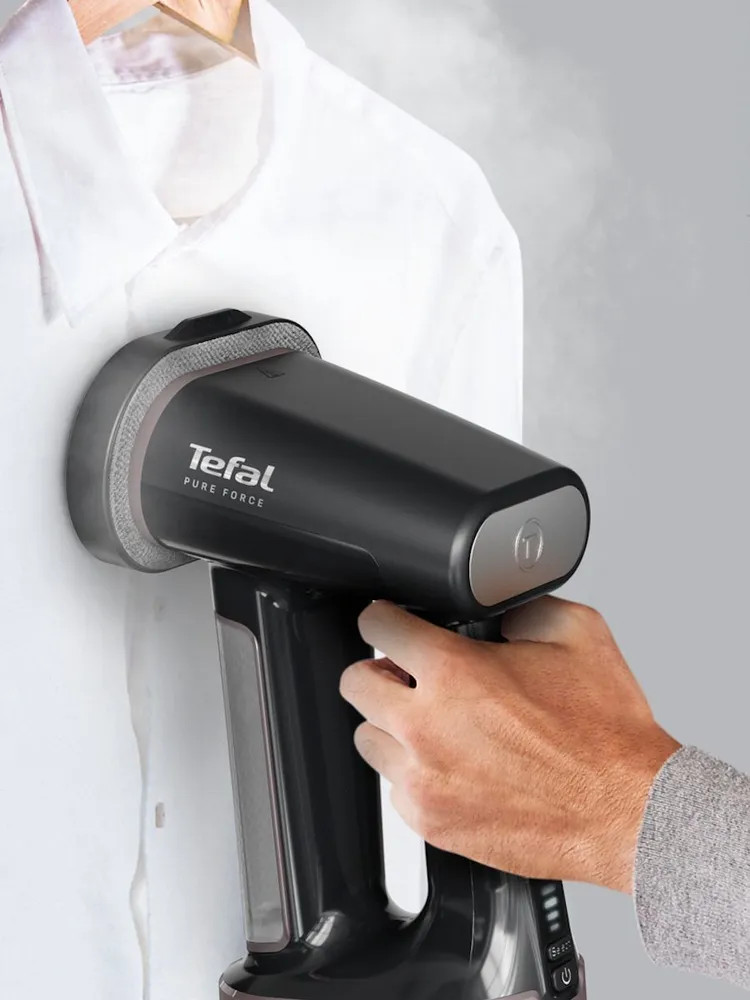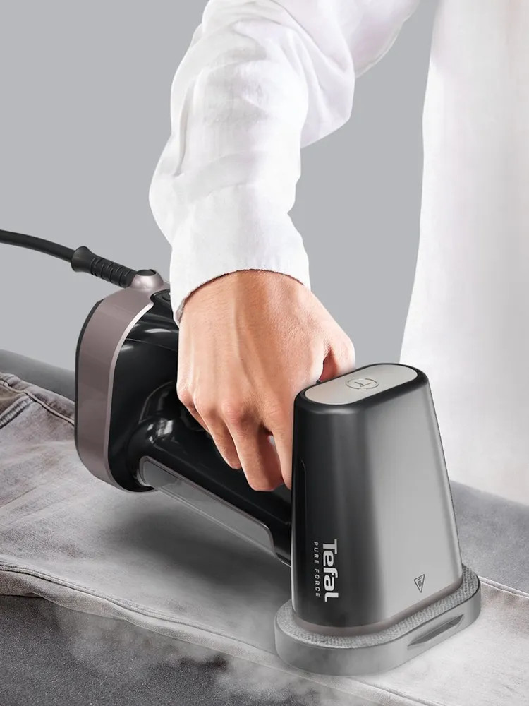Серия: Pure Force Отпариватель Tefal Pure Force 3в1 DT8765E0 — это инновационное устройство, которое сочетает в себе функции вертикального отпаривания, горизонтального глажения и очистки тканей. Благодаря этому он становится незаменимым помощником в уходе за одеждой и домашним текстилем. Его мощность в 1800 Вт обеспечивает быстрый нагрев за 25 секунд, а постоянная подача пара 35 г/мин и паровой удар 90 г/мин эффективно разглаживают даже самые стойкие складки. Съемный резервуар для воды объемом 180 мл позволяет работать до 12 минут непрерывно, что идеально подходит для обработки нескольких вещей подряд. Tefal Pure Force 3в1 DT8765E0 — это мощное сочетание инновационных технологий, удобства и многофункциональности, созданное для безупречного ухода за одеждой без лишних усилий. Благодаря трем режимам использования — вертикальному, горизонтальному и в виде щетки для очистки тканей — прибор обеспечивает максимальную эффективность и деликатное отношение к различным типам материалов: от нежного шелка до плотного денима. |