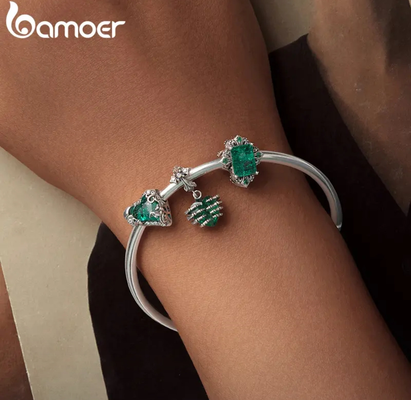 Bamoer Шарм «Зелёное сердце. Ретро»
