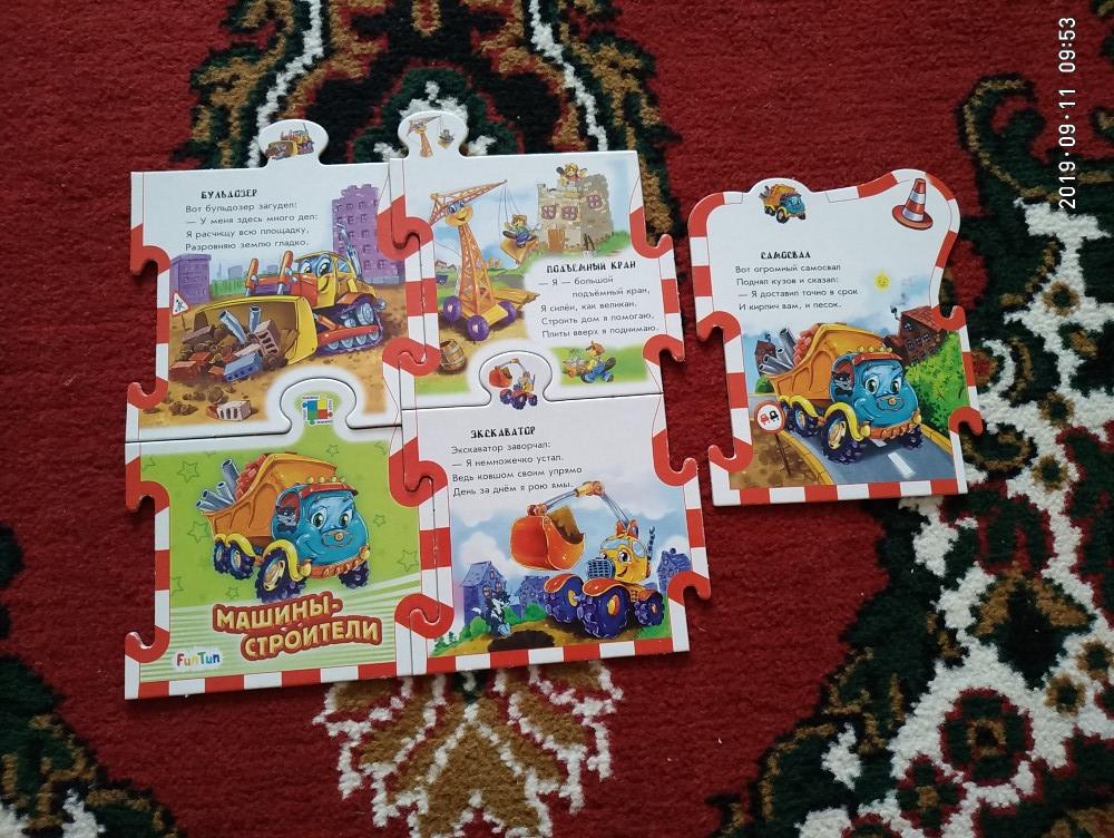 отличная книжка красочная, с простыми стишками, легко собирается ребенком от 2х лет