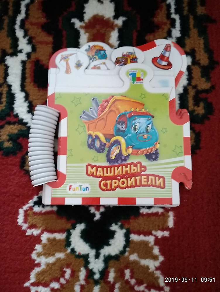 Красочная книжка. Плотные страницы. Сынок любит машинки. Такой книжки у нас не было. Пока ее сам собрать не может, ему 1.10, даны машины: бульдозер, экскаватор, подъемный кран и самосвал.