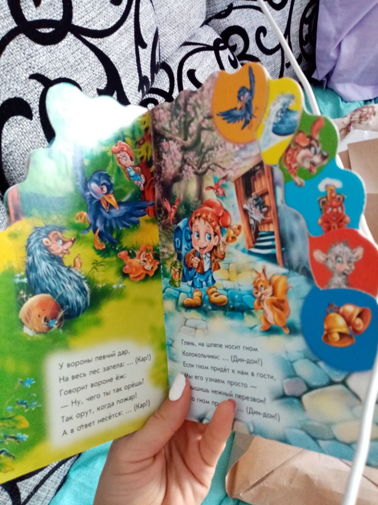 Книжка хорошая и яркая. Но для маленького ребенка немного не удобна в плане перелистывания страниц. Дочке 1,10.