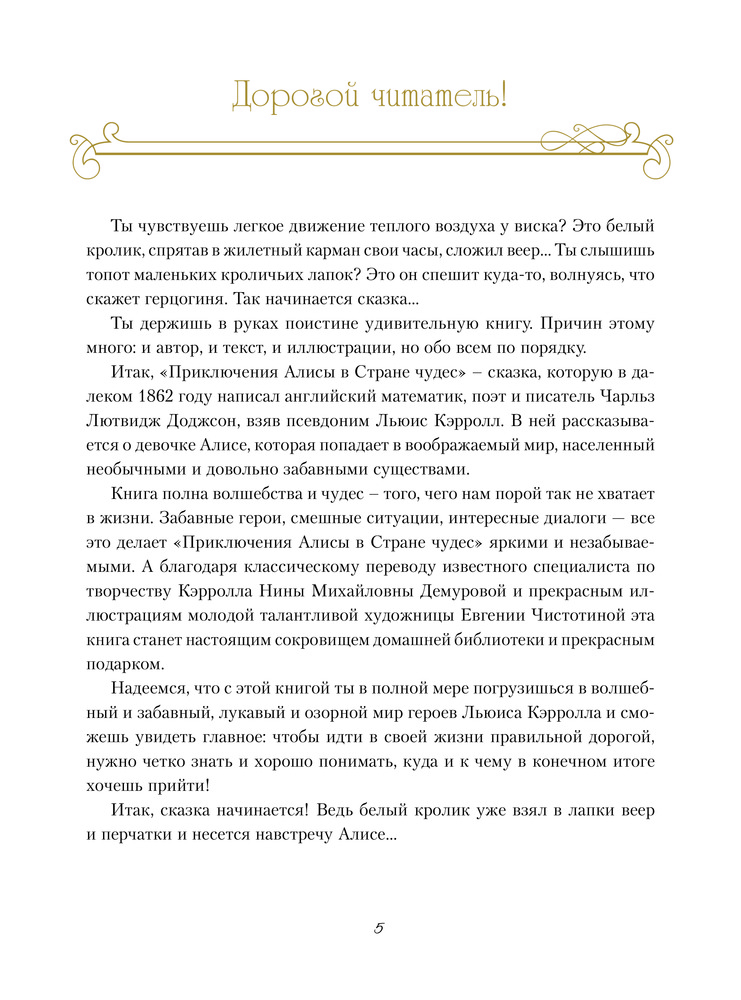 - Классический перевод известного специалиста по творчеству Кэрролла Нины Михайловны Демуровой, который называют каноническим.
