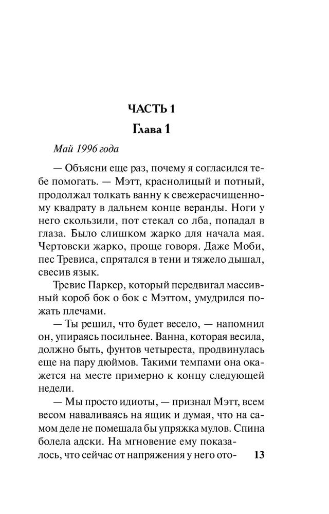 Мягкая обложка. Обычный шрифт. Читать легко. При многократном чтении книга развалится. О романе. Так себе. Читала об авторе, что хорошо пишет, захватывает. Не сказала бы. Может другие его романы изменят мое мнение. Сюжет обычный, местами идиотский я бы сказала. Конец порадовал. Трагизм, переживание за героев и хеппи энд.