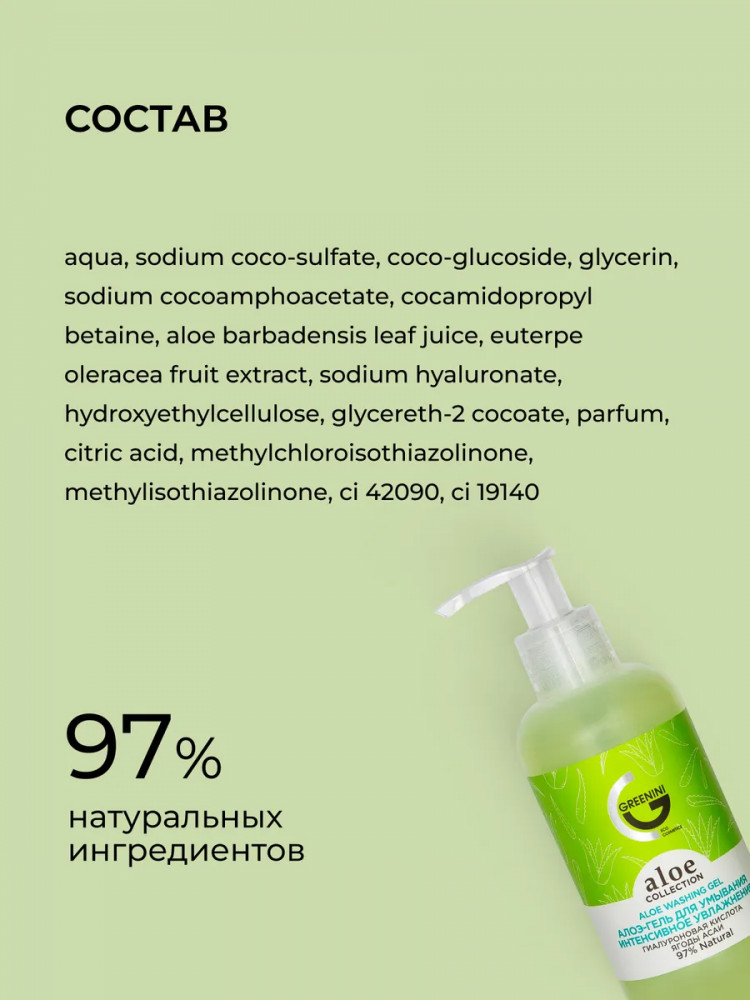 Greenini Алоэ-гель для умывания «Интенсивное увлажнение»