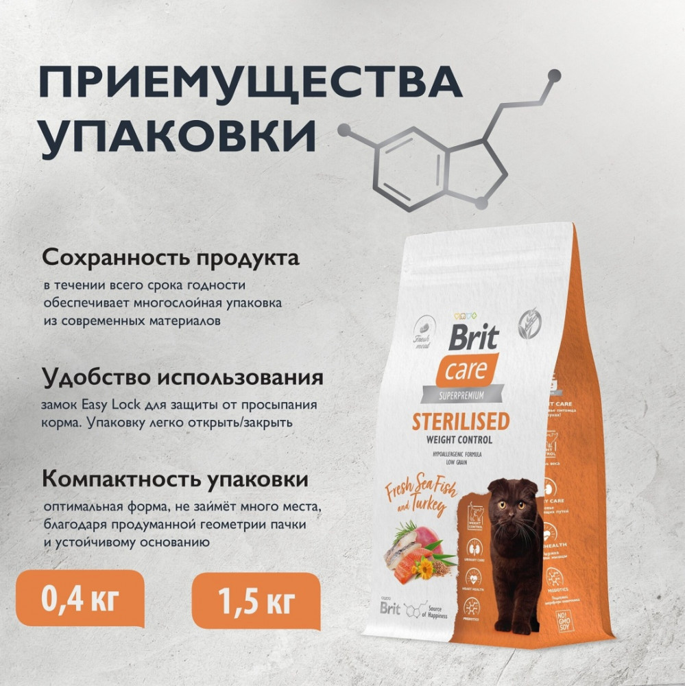 Brit Сухой корм для стерилизованных кошек с рыбой и индейкой «Sterilised Weight Control»