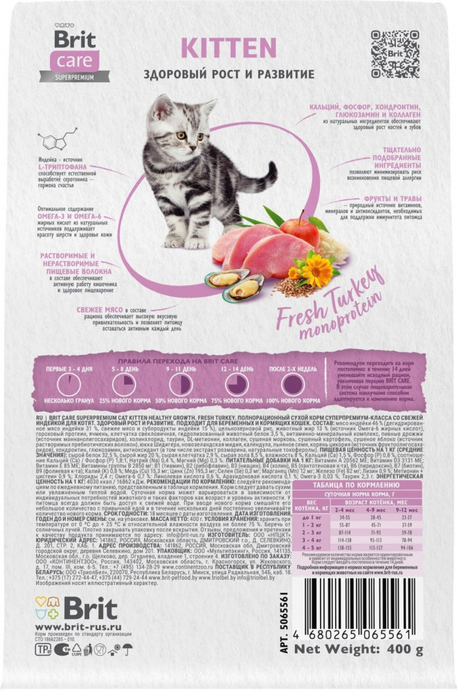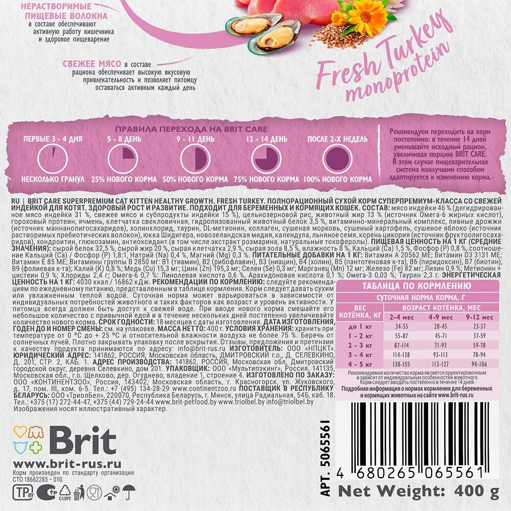 Brit Сухой корм для котят с индейкой «Kitten Healthy Growth»