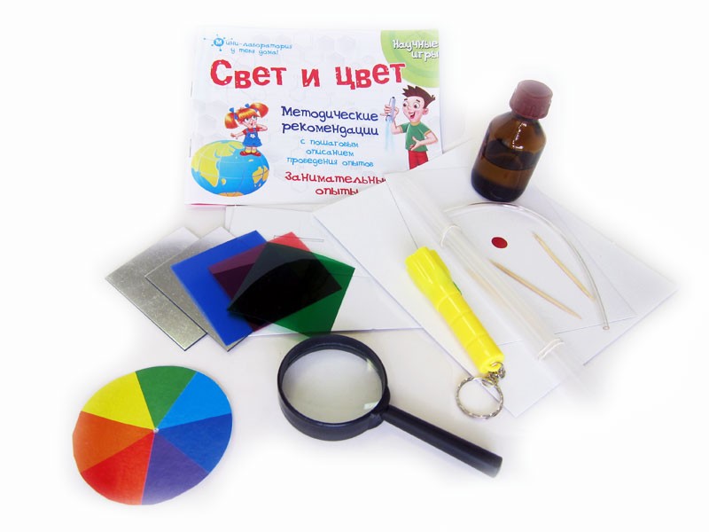 Ranok Creative Набор для экспериментов «Свет и цвет»В данный момент этот товар отсутствует в продаже. Возможно, у нас найдется аналогичный или похожий товар здесь. Серия: Научные игры Набор для экспериментов «Свет и цвет» позволит детям самостоятельно провести физические опыты в домашних условиях. Даже неподготовленный экспериментатор заставит светиться капли воды, сможет создать у себя на столе радугу, сделать перископ, приготовить раствор для мыльных пузырей, понять принцип распространения света. |